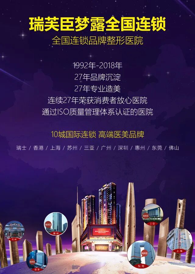 瑞芙臣医疗集团旗下的佛山梦露医学美容门诊部,位于佛山禅城区汾江中路43号,是佛山第一家整形美容品牌,拥有专业综合医疗背景的医学整形美容机构。多年来,佛山梦露医学美容门诊部始终以安全整形创百年品牌的理念为广大求美这提供优质的整形美容服务。2014年,佛山梦露医学美容门诊部再度品牌升级,学习瑞芙臣医疗集团来自中国、瑞士、韩国及欧洲等专业技术,目的是要成立佛山专业整形美容及抗衰老美容中心和拥有17年专注植发领域的医疗团队,形成更系统,更专业,更完善的医疗整形美容服务体系。