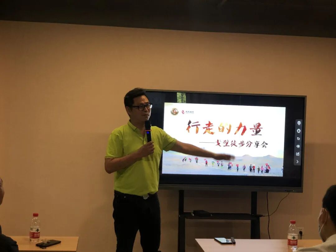 分享会上,她与我们分享戈壁徒步活动中团队凝聚力、团队文化的建设,以及徒步活动后对企业发展的动力,企业中团队的建设,企业员工内驱力等方面的思考,对整个活动进行了升华。