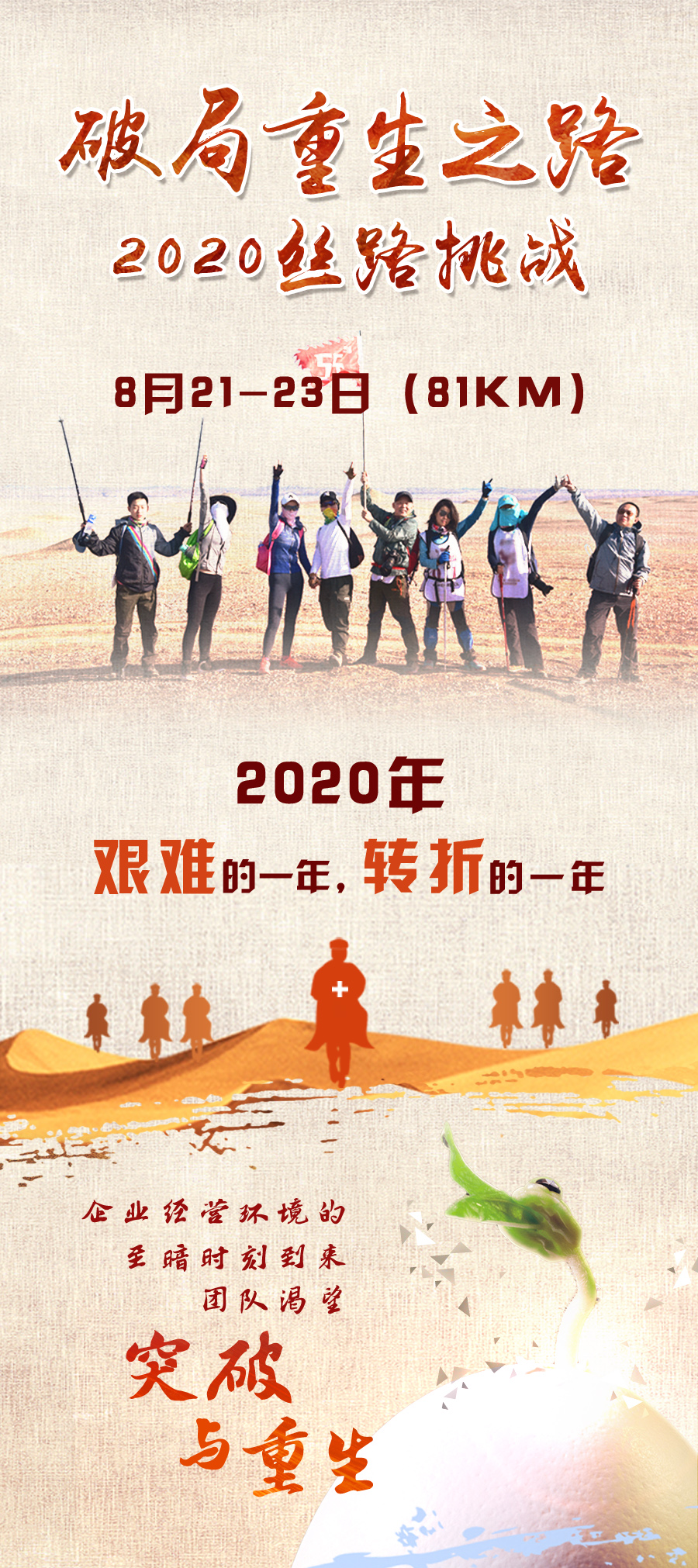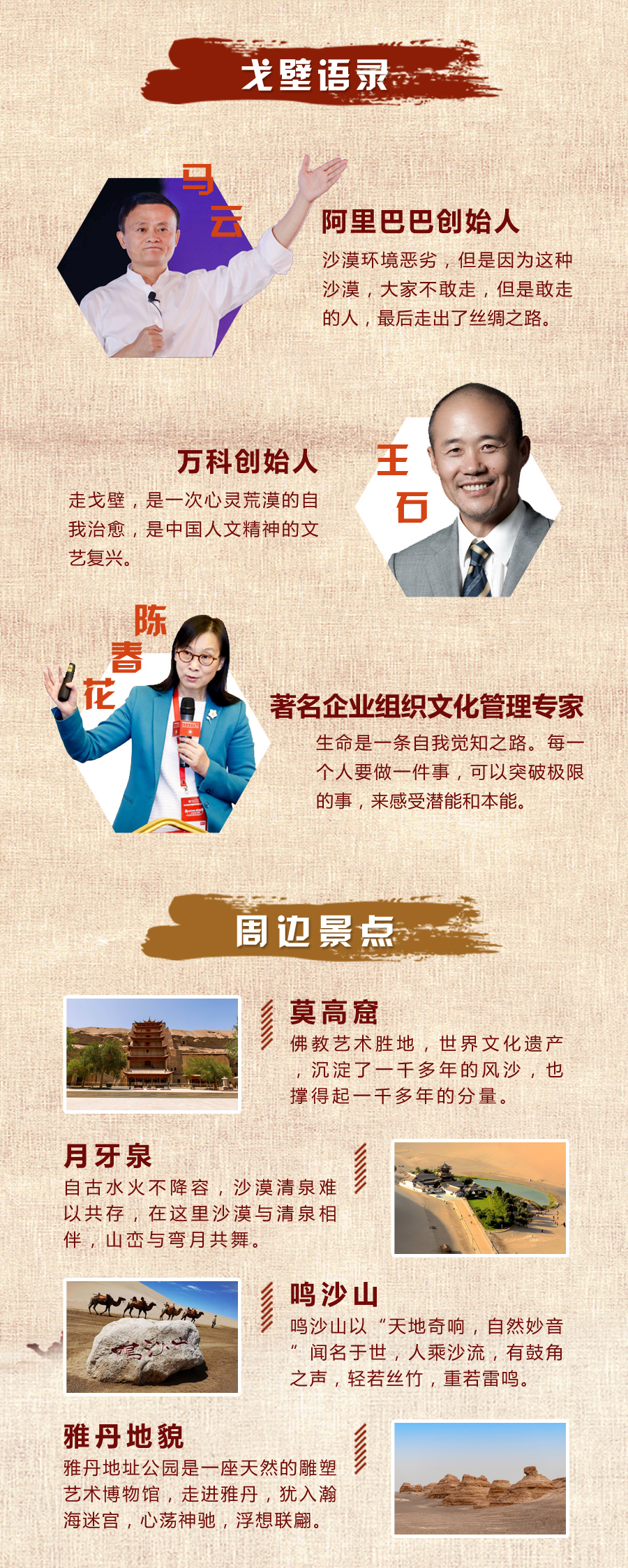 每年有很多企业家踏上戈壁的征途,经历苦难洗礼,涅槃重生、重新启程;感受丝绸文化,协同创造!7月6日下午,我们相约禅城,倾听佛山青企精英企业家,戈壁挑战81公里的戈友分享,感受与众不同的故事,兄弟姐妹的共同生命经历。