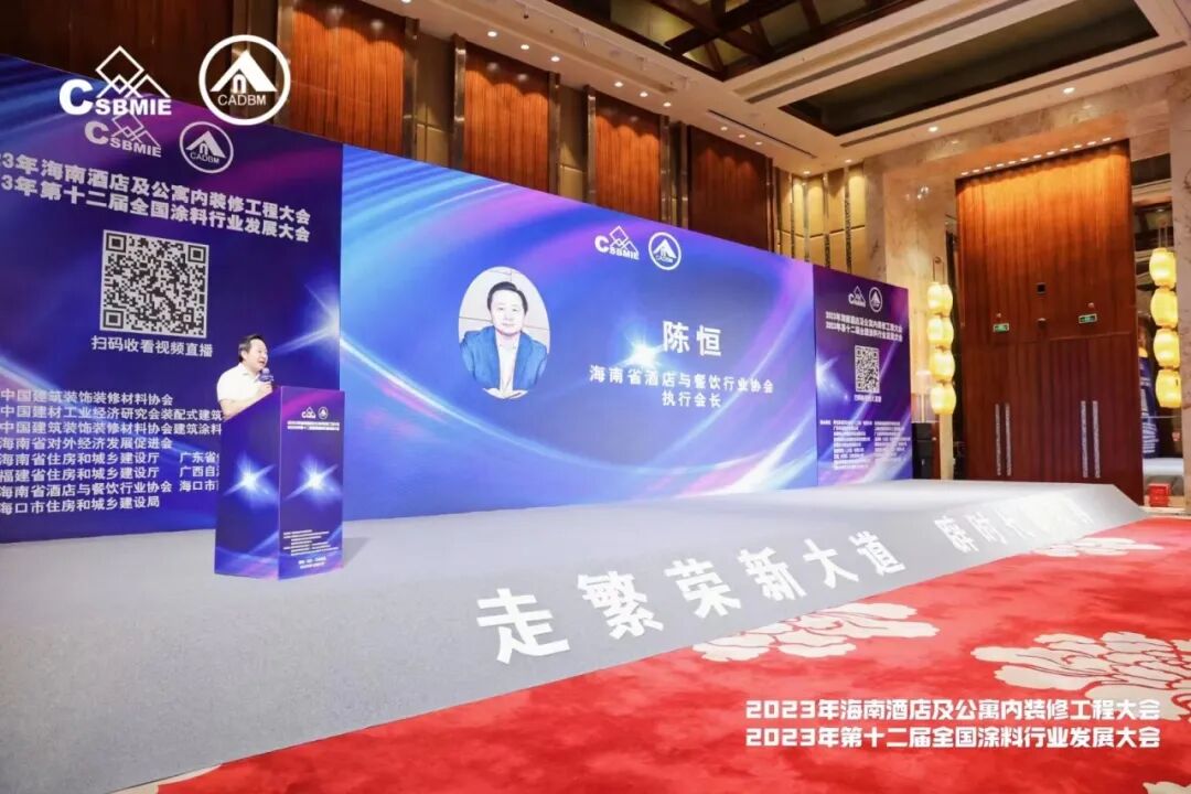 2023年海南酒店及公寓内装饰工程大会暨第十二届全国涂料行业发展大会在海口万豪酒店召开,海南省酒店与餐饮行业协会领导受邀出席并致辞。
