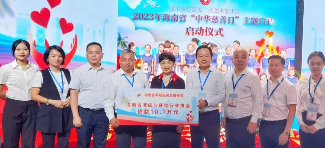 海南省酒店与餐饮行业协会携手拾味集团、龙泉集团、皇马假日集团、十八碗、川妹餐饮、豪约客餐饮和锦晟酒店管理公司八家单位参加2023年海南省“中华慈善日”主题宣传启动仪式,并为养老服务发展基金捐款:拾万壹仟元。省委书记、省人大常委会主任冯飞出席启动仪式,省人民政府副省长蔡朝晖致辞,省人大常委会原副主任、省慈善总会会长陆志远作“海南幸福家园”项目推介。省领导和省有关部门领导现场为慈善捐款。