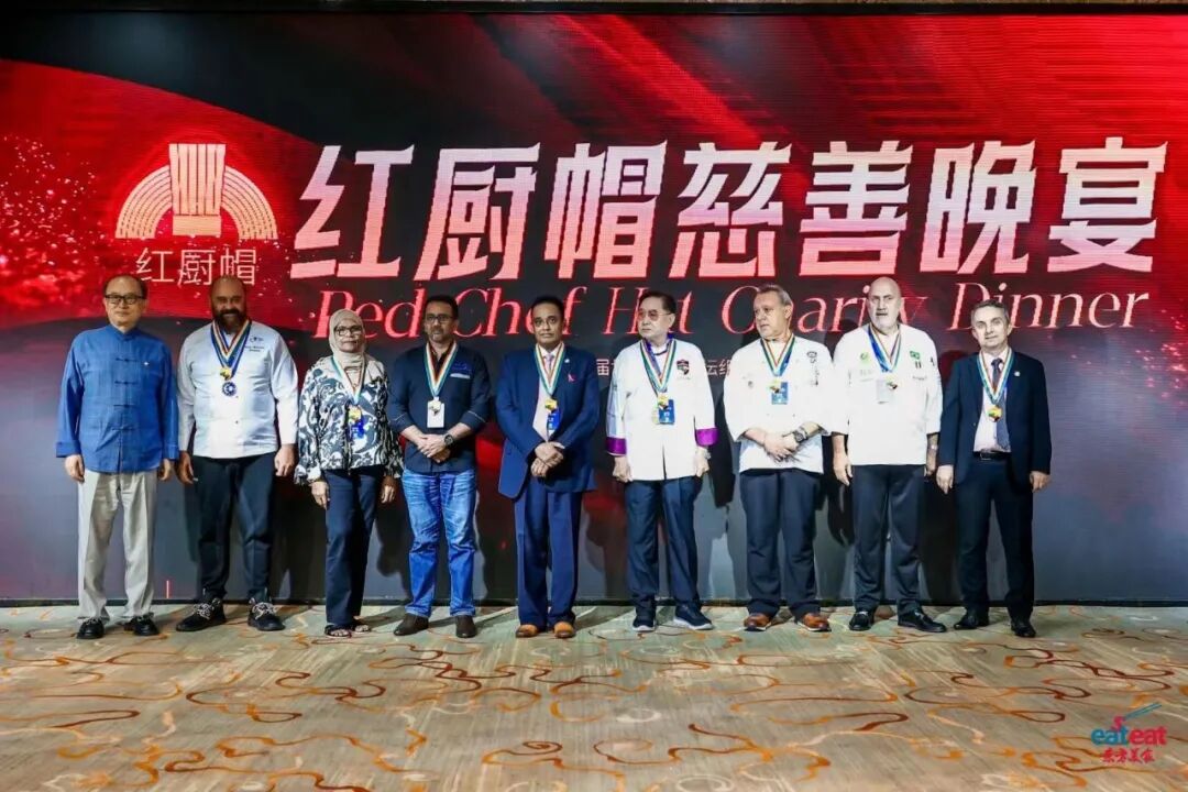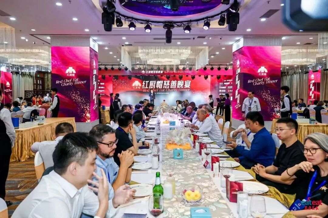 第四届世界食学论坛系列活动之一的红厨帽慈善晚宴在海口欢乐海岸美食联盟举行,晚宴由第四届世界食学论坛组委会主办,第四届食学论坛的领导、嘉宾,来自各国使馆的外交官,以及各位爱心企业家代表参加晚宴。