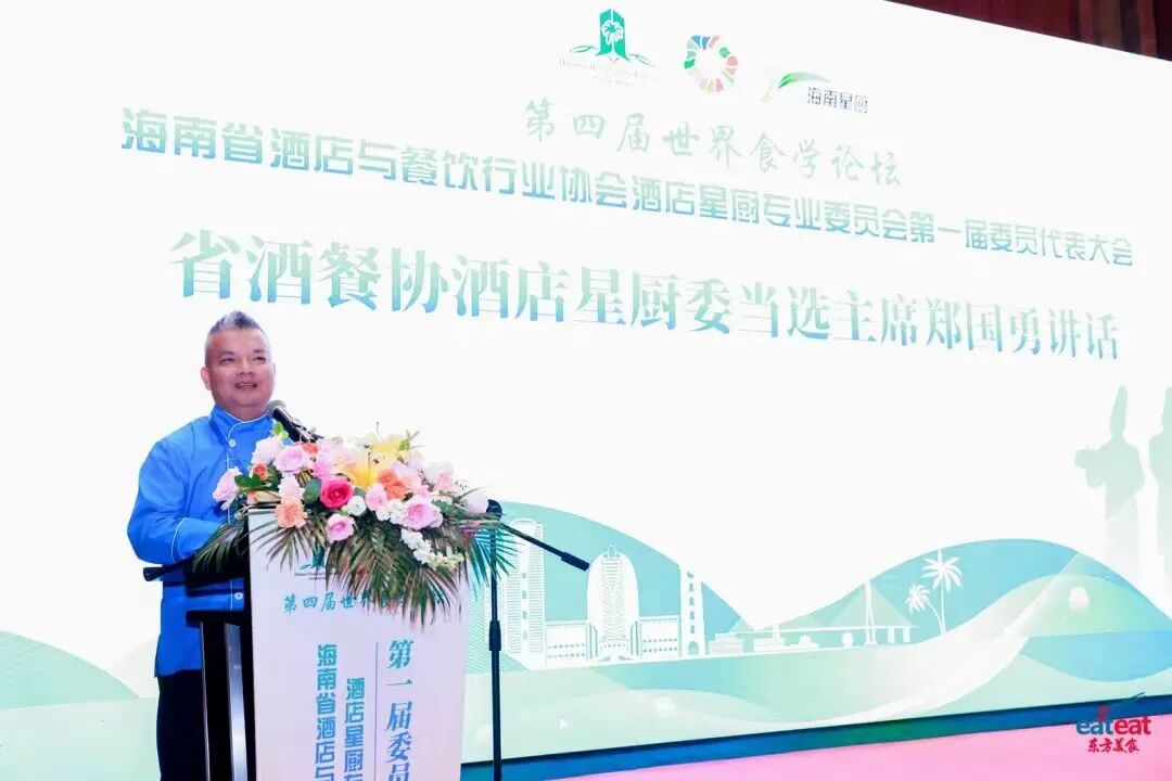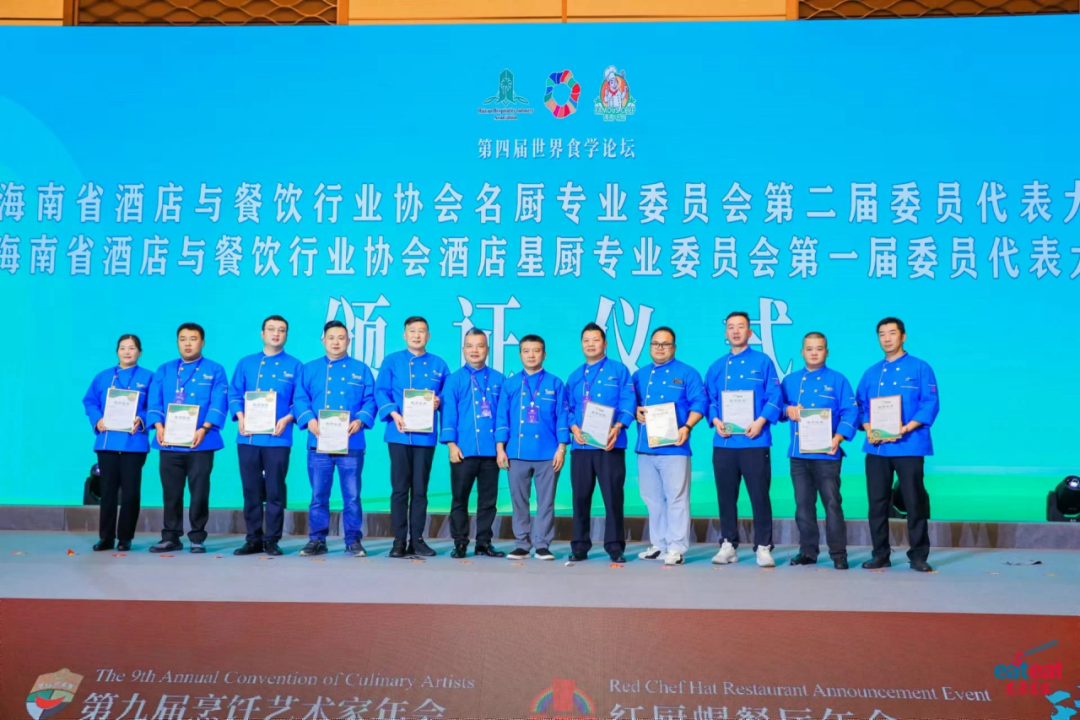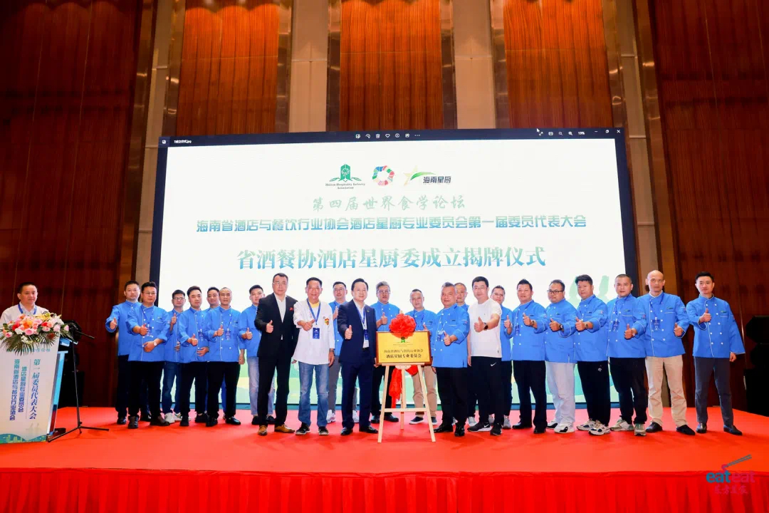第四届世界食学论坛期间召开海南省酒店与餐饮行业协会酒店星厨专业委员会第一届委员代表大会,正式成立省酒餐协星厨委。会议审议通过《海南省酒店与餐饮行业协会酒店星厨专业委员会工作条例》《海南省酒店与餐饮行业协会酒店星厨专业委员会选举办法》,选举产生省酒餐协星厨委第一届领导班子,中国饭店协会副会长、中饭协名厨委常务副主席、海南省酒店与餐饮行业协会主席团主席、在业界享有“粤菜教父”之称的广州半岛投资集团董事长利永周大师被聘为省酒餐协首届星厨委名誉主席,亚洲十大名厨、海南宴琼州餐饮管理有限公司掌门人郑国勇当选首届星厨委主席。为积极开展技术研讨、提升烹饪传承创新能力,培育德才兼备、厨艺精湛、具有工匠精神的自贸港酒店星厨,会上同期召开“星厨论道”论坛,首届注册中国烹饪大师、中国最受瞩目烹饪艺术家、中国烹饪艺术百佳师门仇师门掌门人仇上明,金茂三亚亚龙湾丽思卡尔顿酒店餐饮总监王锐以及海口丽思卡尔顿酒店中餐行政总厨骆文龙分别作主题演讲。