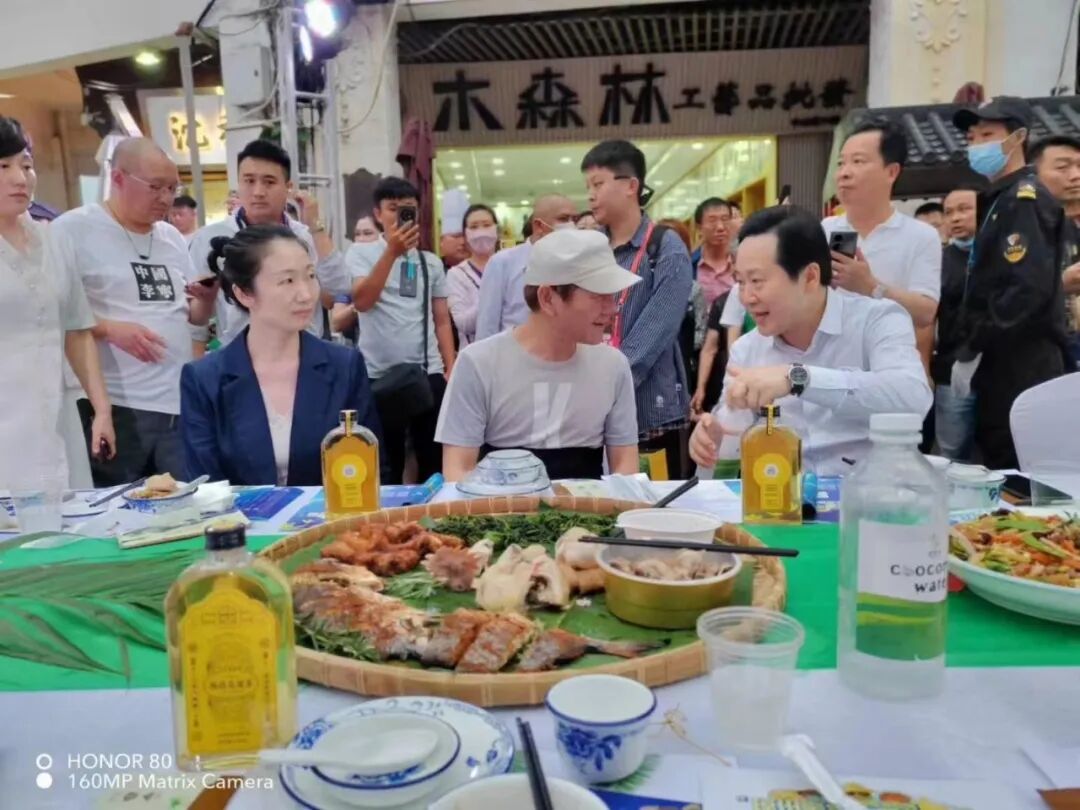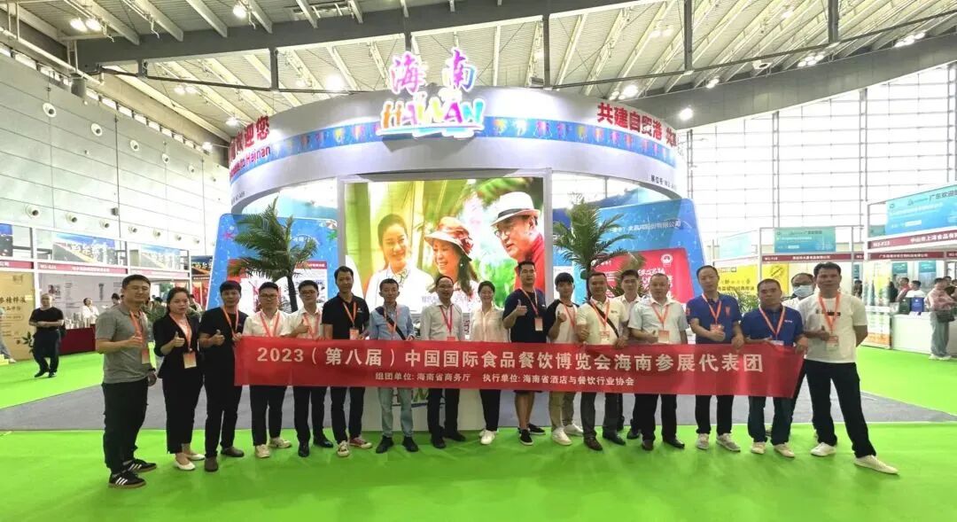 受海南省商务厅委托,海南省酒店与餐饮行业协会组织椰树集团、农垦热作集团、罗牛山食品集团、潭牛文昌鸡股份、武国餐饮、椰语堂、椰香文昌鸡等十家食品餐饮企业赴长沙参加2023(第八届)中国国际食品餐饮博览会。商务部服务贸易和商贸服务业司司长王东堂在海南省消费局吴梁局长陪同下参观海南馆并海南品鉴糟柏醋。