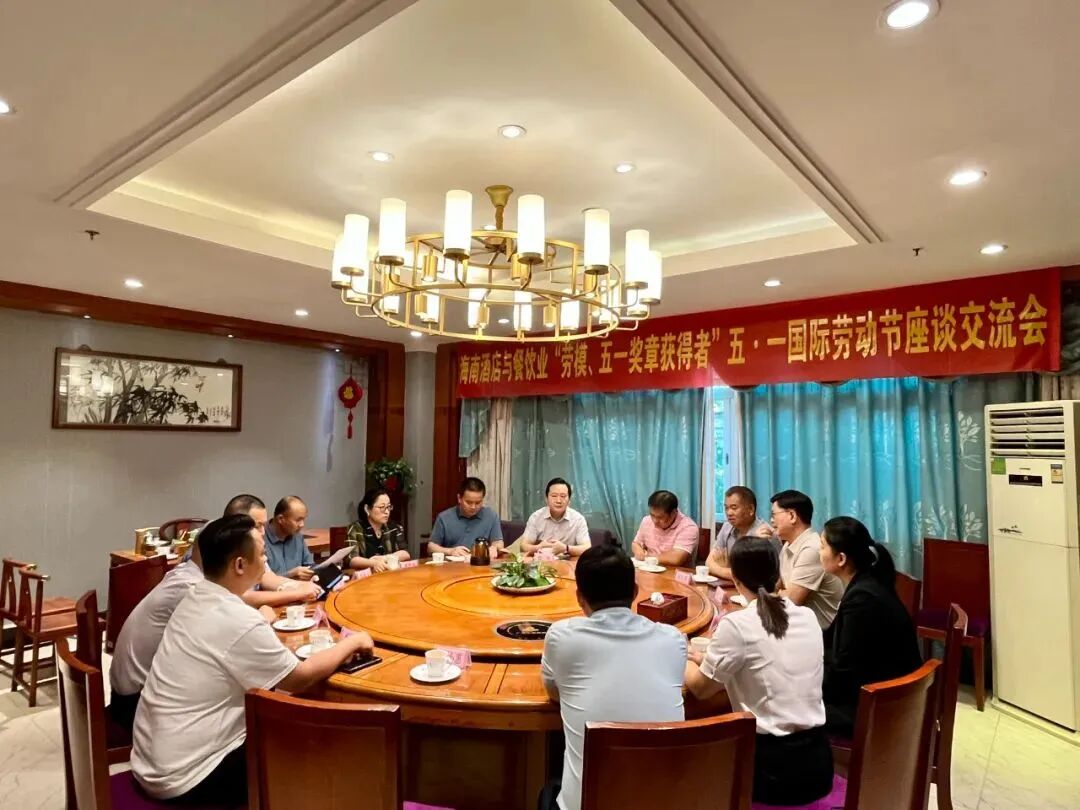 在省财贸旅游烟草工会和海口市财贸工会指导下,省酒店与餐饮行业协会联合省酒店餐饮行业工会联合会和海口市餐饮烹饪行业工会联合会共同召开海南酒店与餐饮业“劳模、五一劳动奖章获得者”五一国际劳动节座谈交流会。