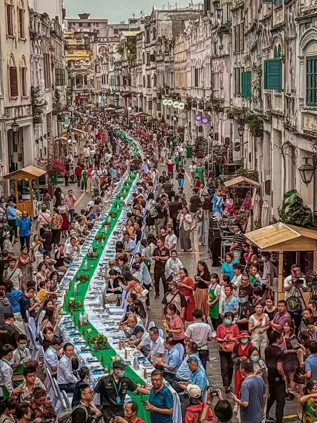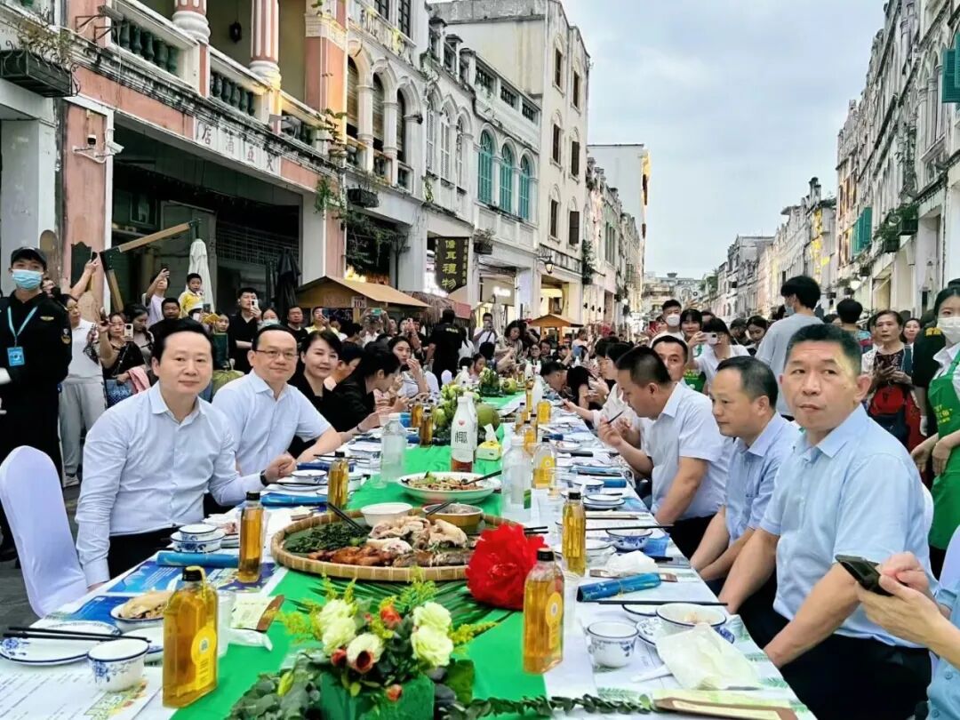 由海口市人民政府指导,海南省酒店与餐饮行业协会支持,海口市商务局主办,海口广播电视台、南海网、海口市餐饮烹饪行业协会承办,广电运营中心全程执行的“琼州家宴 千年文俗”琼韵之夜长桌宴在海口骑楼老街热闹开启,近千名市民游客齐聚这条具有百年历史的南洋风情历史文化街区,感受一场集视、听、味于一体的海南文化盛宴。