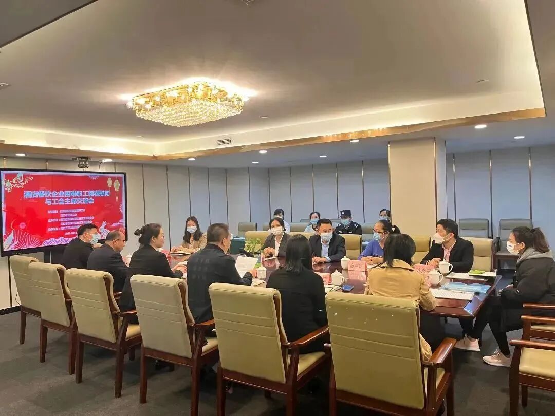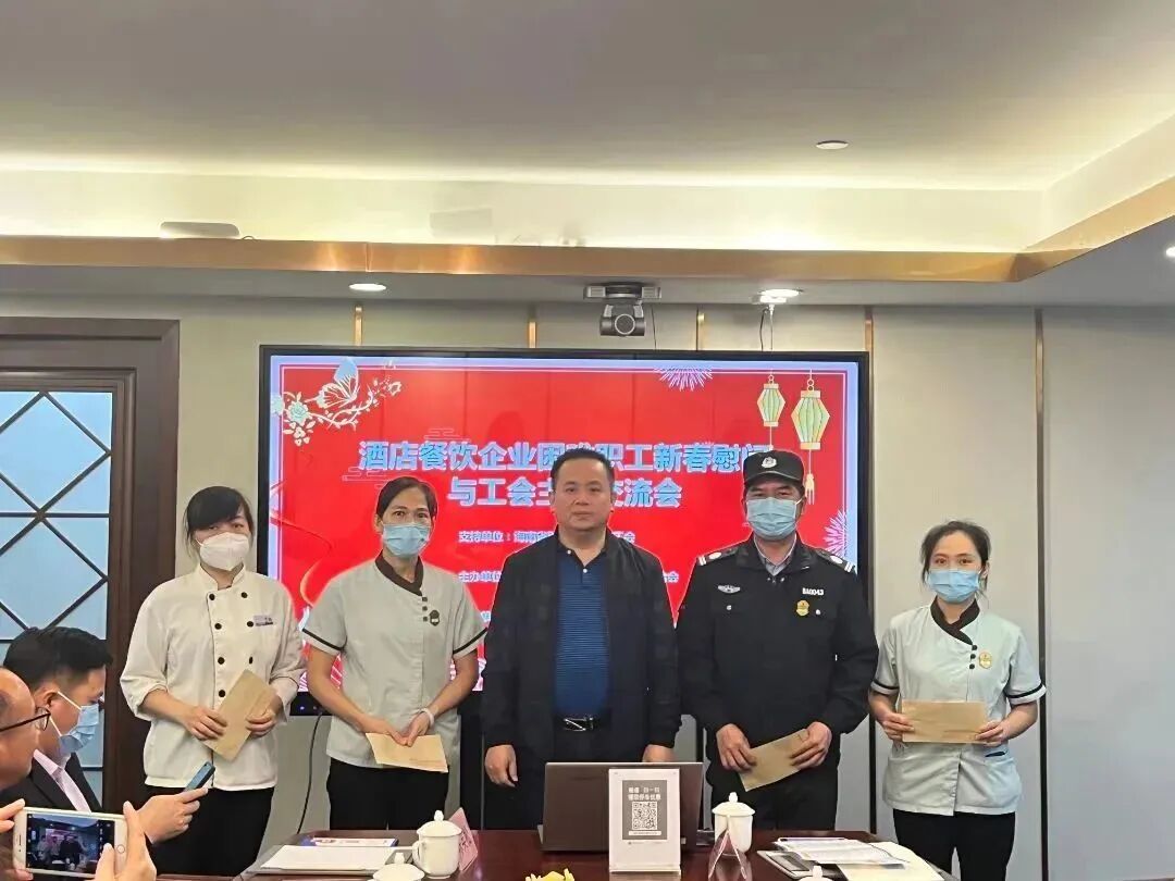 由省酒店与餐饮行业工会联合会和市餐饮烹饪行业工会联合会主办,海口五指山国际酒店协办的“酒店餐饮企业困难职工新春送温暖慰问与工会主席交流会”在海口五指山国际酒店举办。