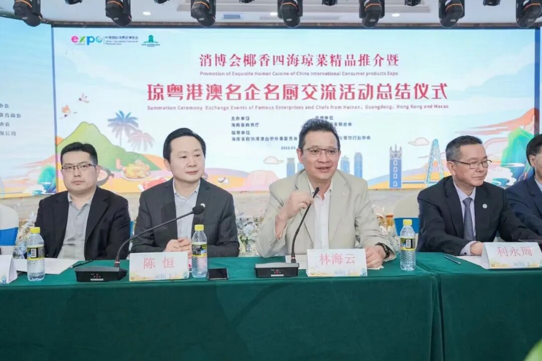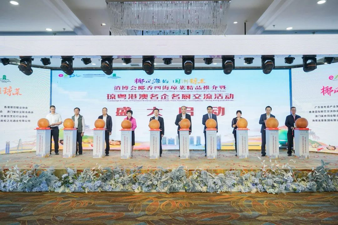 为全力抓好重点产业促投资、消费市场恢复等工作,推动琼菜品牌与粤港澳大湾区的交流与经贸合作,共促琼粤港澳餐饮深度合作,助力海南国际旅游消费中心餐饮业高质量发展,海南餐饮业高质量发展资源推介会、粤港澳名企名厨走进消博会在活动启动仪式后召开。