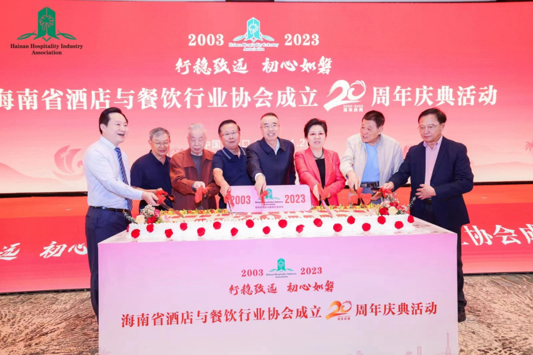 海南省酒店与餐饮行业协会成立20周年庆典活动在海口鲁能希尔顿酒店隆重举办。