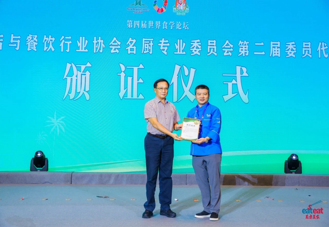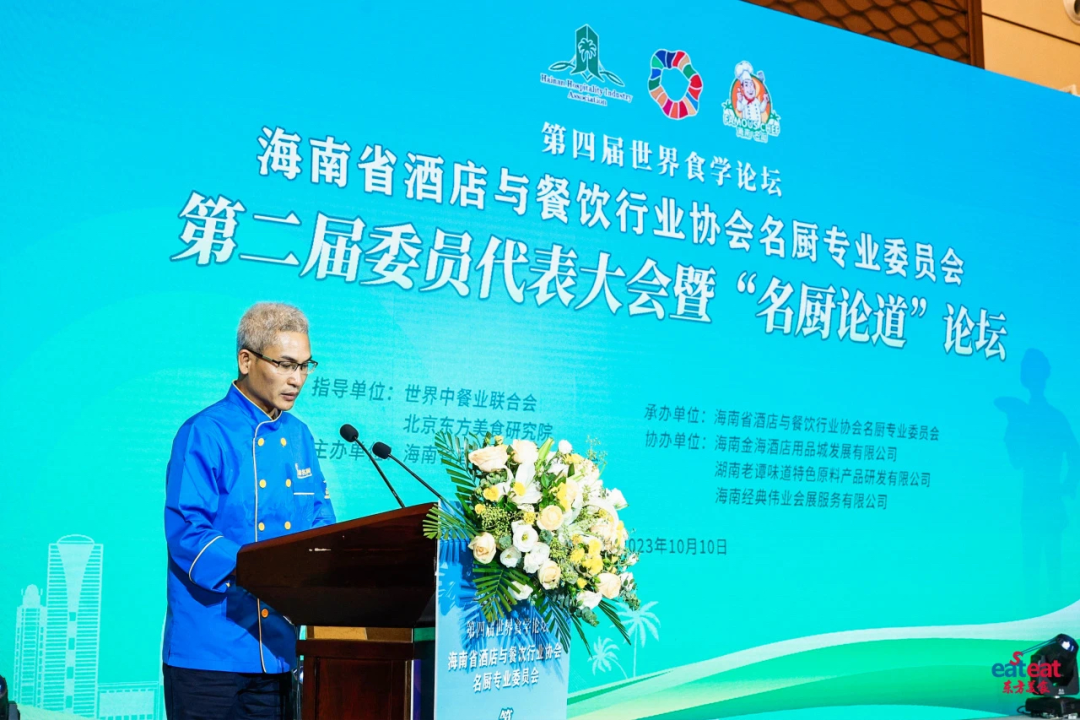 第四届世界食学论坛期间召开海南省酒店与餐饮行业协会名厨专业委员会第二届委员代表大会,世界中餐业联合会会长邢颖,希腊烹饪协会主席、世界厨师无国界组织全球委员会委员Christos GKotsis(克里斯特斯·格科奇斯),斯里兰卡厨师协会主席Dimuthu Kumarasinghe(迪姆图·库马拉辛格)作为特邀嘉宾出席见证。会议审议通过《海南省酒店与餐饮行业协名厨专业委员会工作条例》《海南省酒店与餐饮行业协名厨专业委员会选举办法》,选举产生省酒餐协名厨委新一届领导班子,中国饭店协会副会长、中饭协名厨委主席石万荣大师被聘为第二届名厨委荣誉主席,海南汉群厨房好味餐饮有限公司董事长曾令漢续任名厨委主席。