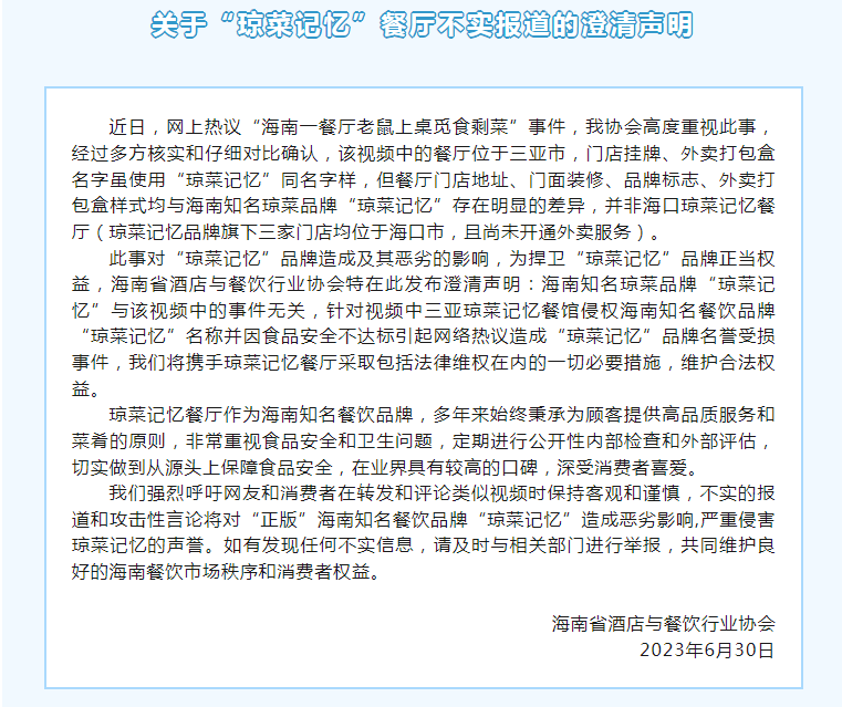[温馨提示] 文章来源于海南酒店餐饮行业协会公众号,转载注明原文出处,此文观点与查生意无关,理性阅读,版权属于原作者若无意侵犯媒体或个人知识产权,请联系我们,本站将在第一时间删掉 ,查生意仅提供信息存储空间服务。