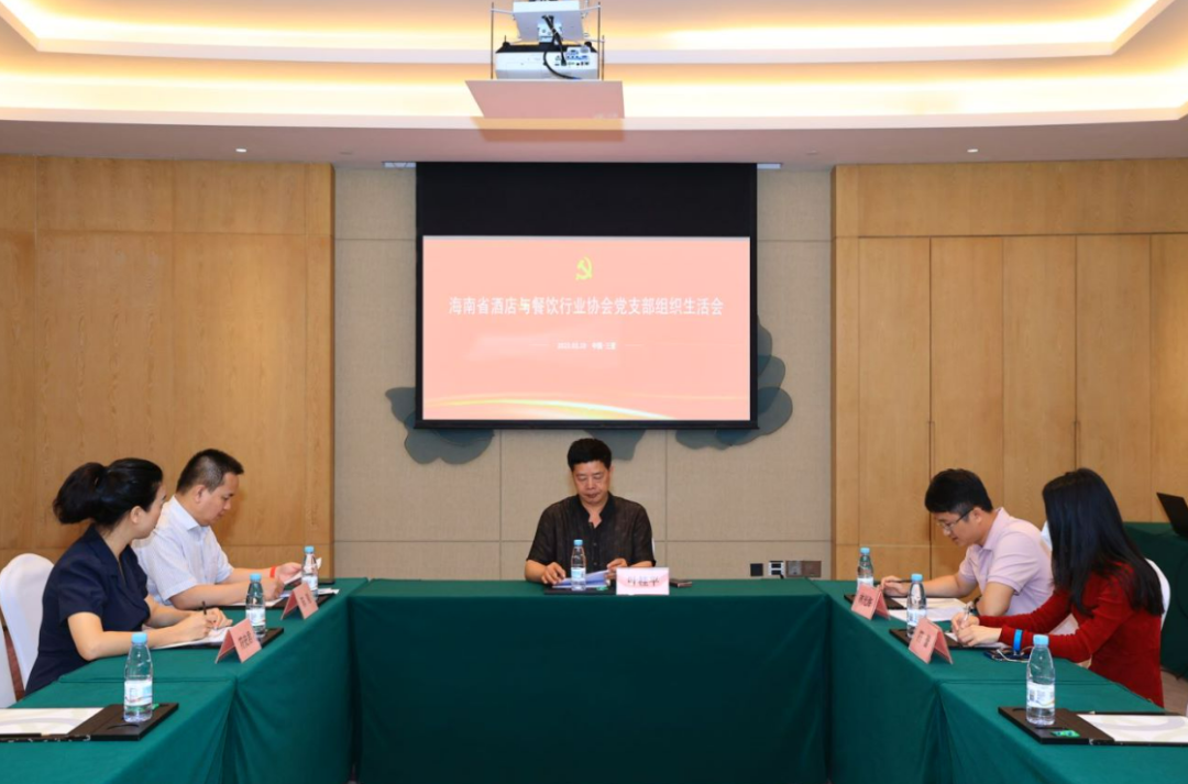 海南省酒店与餐饮行业协会党支部在三亚召开2022年度基层党组织组织生活会并开展民主评议党员,省酒餐协党支部书记叶桂平主持会议。