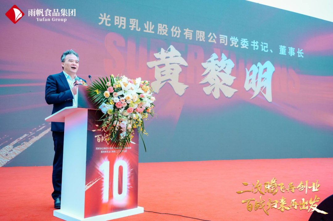 光明乳业董事长黄黎明在致辞中对雨帆食品集团成立十周年和工厂投产表示祝贺,并表示光明也将充分发挥“千分工厂”的标准体系优势,协助雨帆乳业海南工厂进行精细化管理和高效运营,为迈开世界级质量管理的步伐奠定良好的基础。