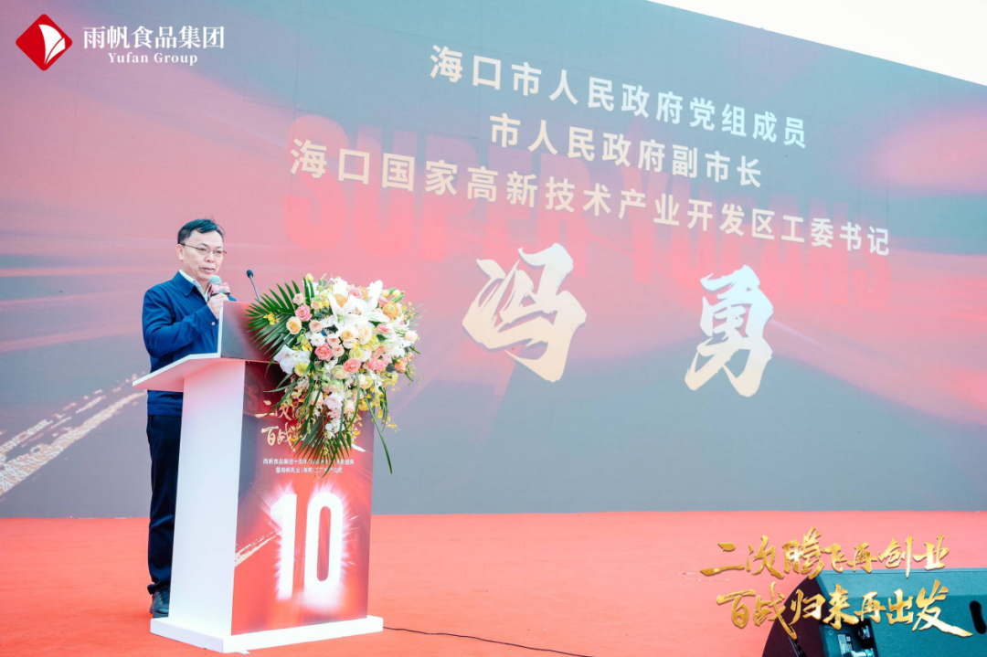 海口市人民政府副市长冯勇出席活动并对雨帆食品集团成立十周年和工厂投产表示祝贺。