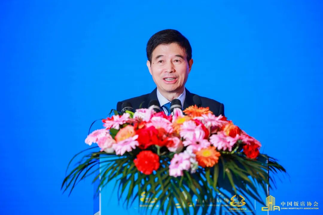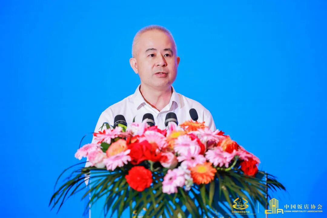 陈新华表示,2023年是深入学习贯彻党的二十大精神的开局之年,党中央、国务院把着力扩大国内需求,恢复和扩大消费摆在优先位置。在各项促消费措施的推动下,饭店市场呈现稳步恢复态势。据国家统计局数据,2023年前三季度,住宿和餐饮业GDP增加值为14724亿元,同比增长14.4%,已超过2019年同期水平。他着重介绍了目前饭店行业市场的几个主要特点:住宿产品供给的优化、绿色发展成为行业高质量发展的底色、酒店连锁化程度的持续提升以及酒店特色化主题内涵不断丰富。他强调,中国饭店协会将发布2023年饭店业高质量发展六大行动计划,包括宣贯国标、绿色赋能,坪效提升、餐饮赋能,健康睡眠产品赋能,数字赋能,品质服务、文化赋能以及校企对接人才赋能。他希望与会代表能够通过此次大会,共同探讨行业发展的新思路、新模式,全面促进饭店业的高质量发展,为全面助力中国特色海南自由贸易港和国际旅游消费中心建设,为全力促消费、惠民生、稳就业作出积极贡献。