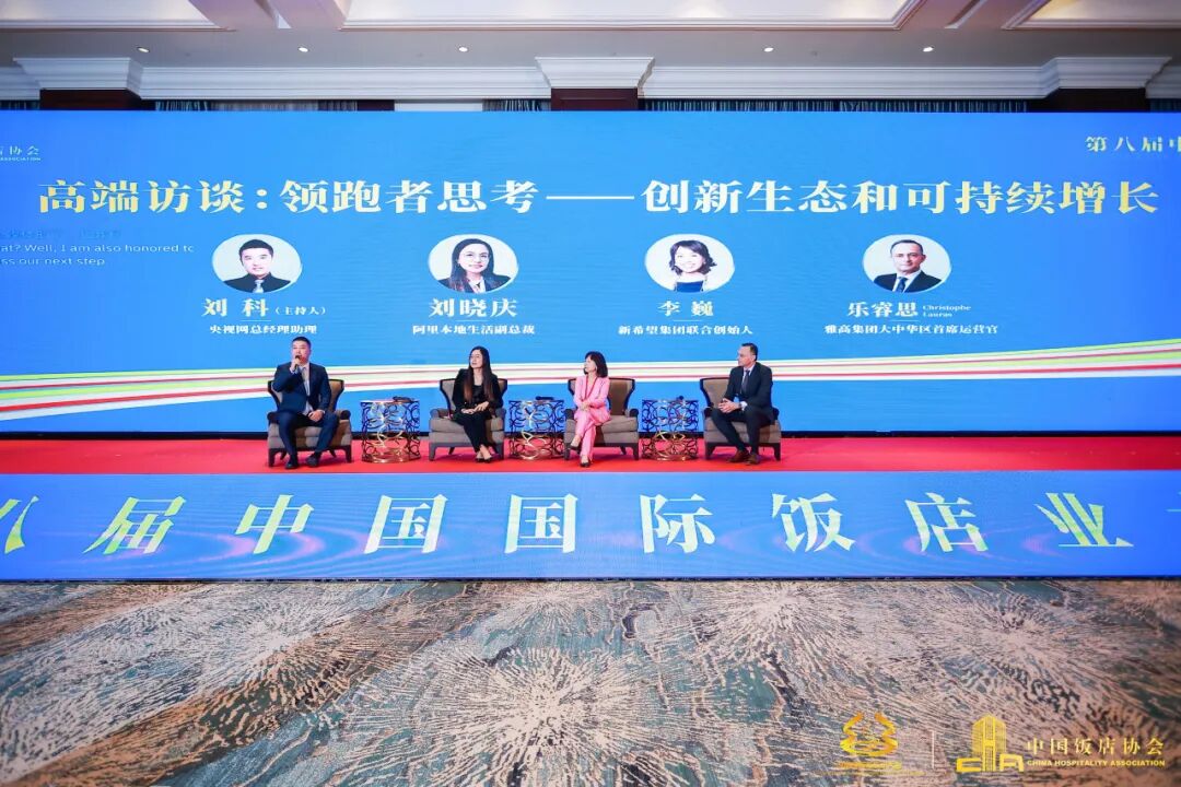 开幕式上,央视网总经理助理刘科担任高端访谈主持人,并作为媒体代表与阿里本地生活副总裁刘晓庆、新希望集团联合创始人李巍、雅高集团大中华区首席营运官Christophe Lauras 乐睿思一起,围绕“创新生态和可持续增长”等话题进行了观点交流,聚焦行业前沿,开展圆桌对话,多维度探讨酒店餐饮行业可持续发展新路径。