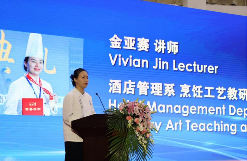 教师代表金亚赛结合自身经历,以“成长”为关键词,向同学们分享自己从一名具有十多年厨师生涯的业界资深人士转变成一名专业教师的成长心得。她希望同学们勇敢地跳出“舒适区”,投入到新的专业知识探索和实践中,熟练掌握专业技能,在老师的帮助与指导下,收获属于个人的成长。