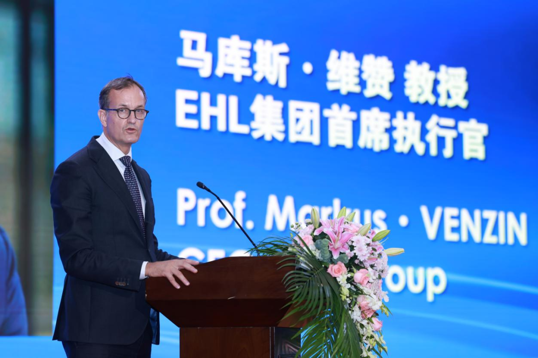 马库斯·维赞教授在致辞中首先向全体教师致以诚挚的问候。他表示,酒店及泛服务业在海南自贸港的建设中具有重要的地位,这给同学们未来的发展带来了绝佳的机遇。他鼓励大家激发思想,与时俱进,勇于创新,希望同学们在未来充满活力的三年课程学习环境中,专注个人和职业能力的培养,积极参与专业实践、行业活动,保持与行业的紧密联系,不断拓宽国际视野,努力追求卓越,成为塑造行业未来的、富有同理心的领导者。