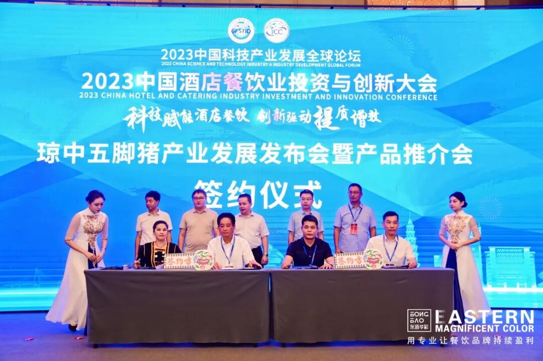 为大力发展琼中五脚猪产业养殖,助力海南乡村振兴建设,论坛同期举办“琼中五脚猪产业发展发布会暨产品推介会”,华南农业大学兽医学院教授、海南地方猪产业技术体系首席科学家、琼中县五脚猪产业协会等出席并开展签约。