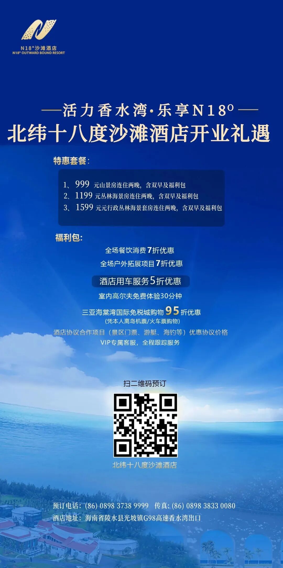 点击上方蓝色文字关注我们吧6月21日,期待已久的北纬十八度沙滩酒店在海南陵水香水...