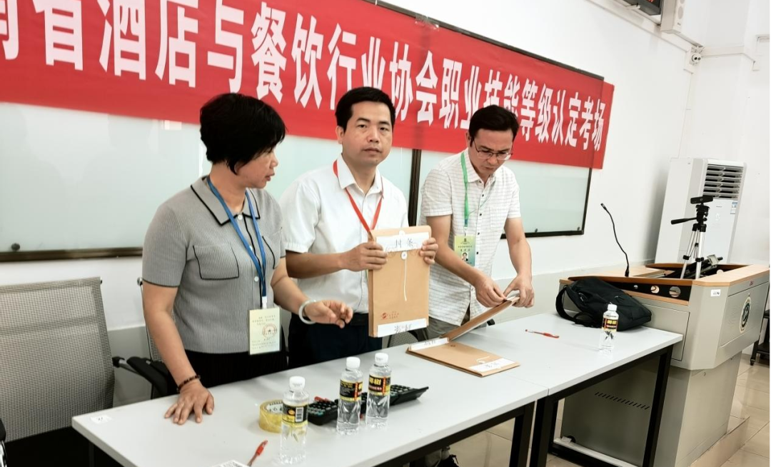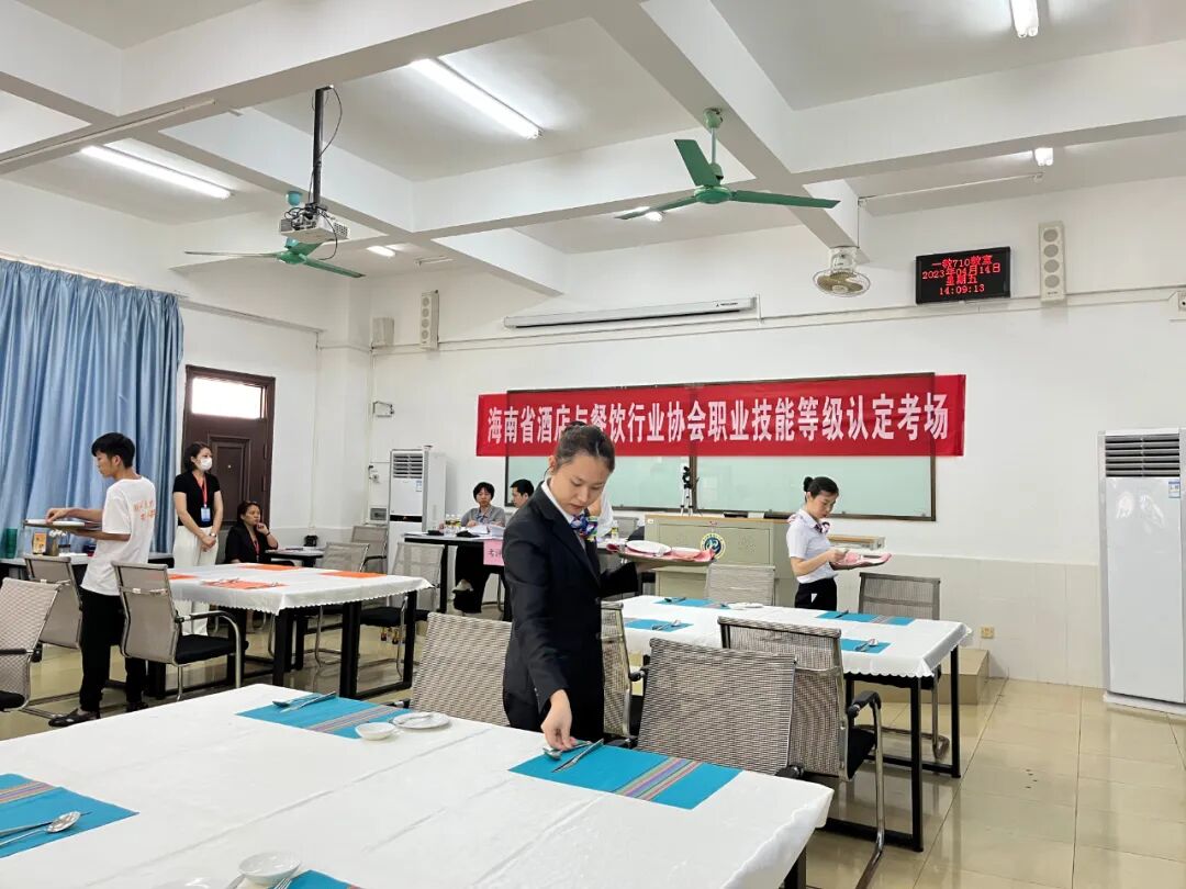 为做好我省酒店与餐饮行业技能人才评价工作,不断提升行业从业人员的专业技能水平和服务品质,促进行业高质量发展。4月14日,省酒店与餐饮行业协会联合海南职业技术学院实施2023年首批餐厅服务员高级工职业技能等级认定考核。来自海南豪约客管理集团有限公司、海南万企星餐饮文化有限公司等企业的58名餐厅服务人员经过专业技能培训后参加本次认定考核。本次认定考核的理论知识采用闭卷纸质作答方式,技能考核采取现场操作、考评员现场评分的方式进行。为确保本次职业技能等级认定考核规范和有序进行,协会严格按照相关规定,从考场布置、理论监考、实操考评等环节全方位进行精心安排,并配备专业的考务、考评、督导和监考人员,规范做好认定过程中的监督、阅卷、评分等工作。