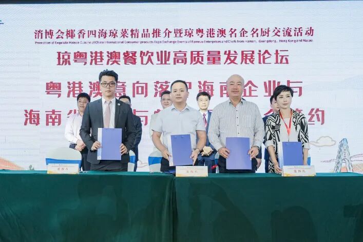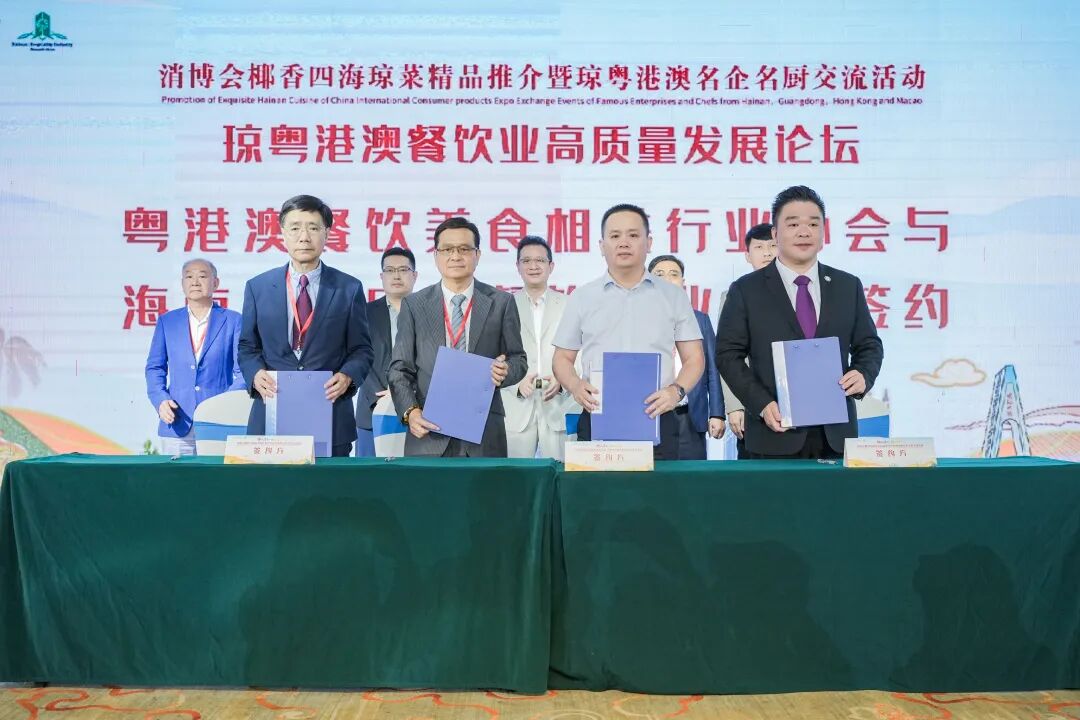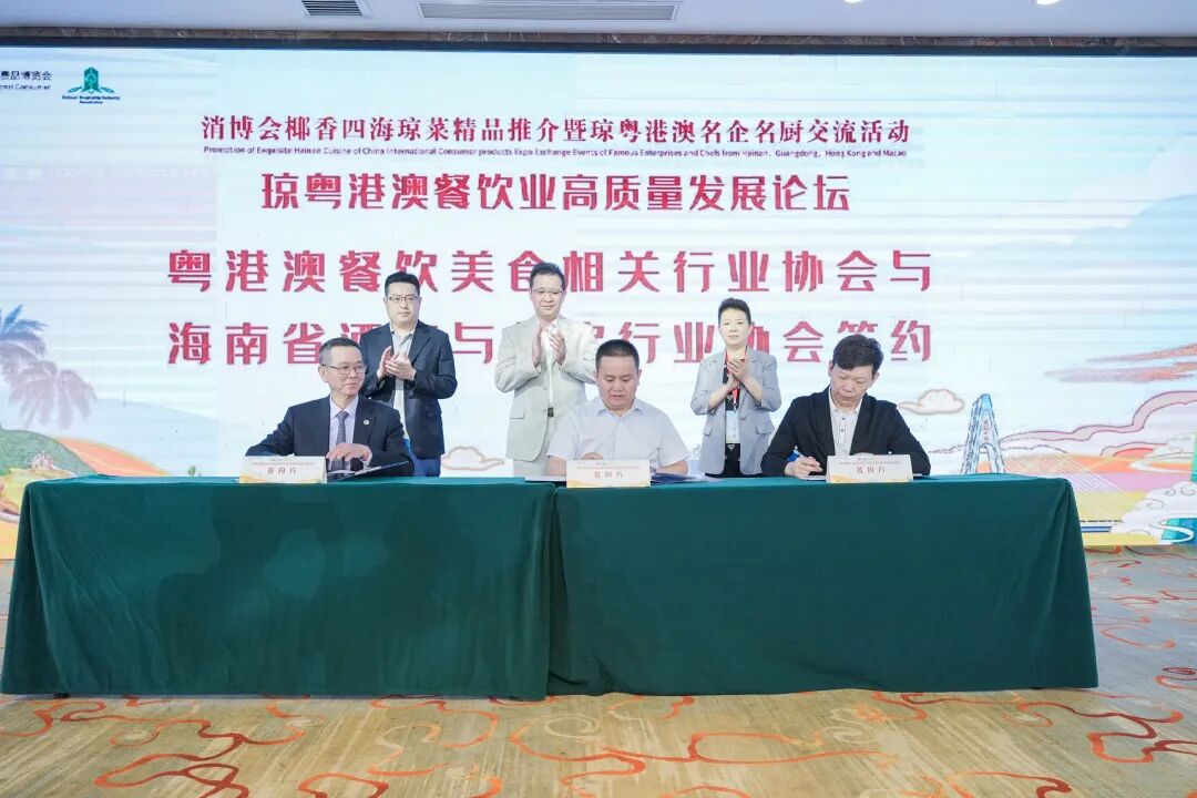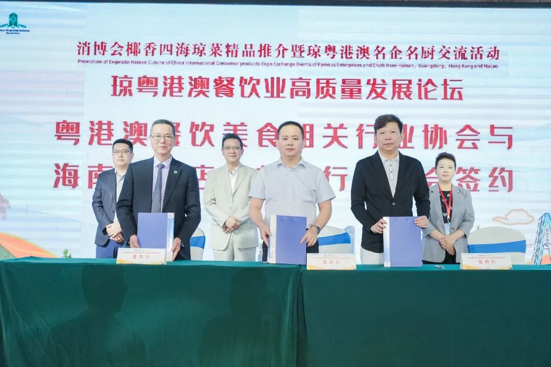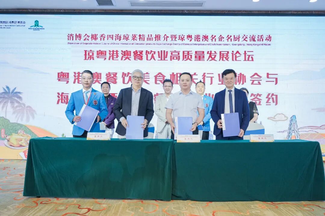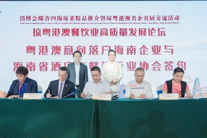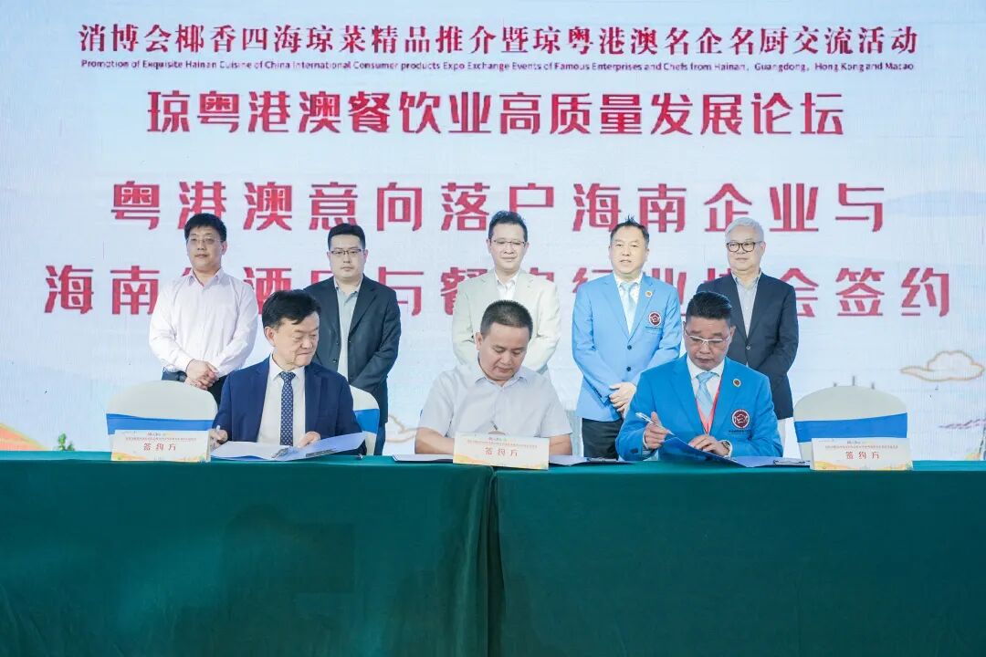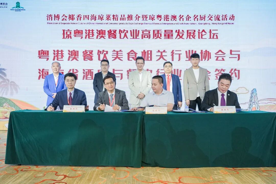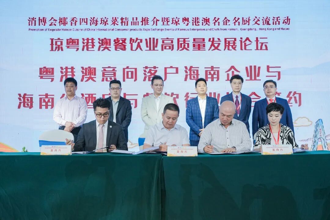 为推动海南与粤港澳大湾区行业交流,提升琼粤港澳菜系品牌影响力,以海南省商务厅主办的消博会椰香四海琼菜精品推介暨琼粤港澳名企名厨交流活动为契机,海南省酒店与餐饮行业协会和粤港澳8家餐饮美食行业协会缔结友好协会,并与9家粤港澳餐饮名企签订意向落地协议,共谋深度合作,开启琼粤港澳餐饮高质量发展新篇章。