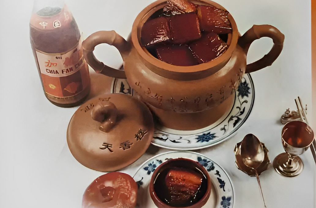 相传,(宋)元祐四年(1089),苏东坡出任杭州知州,他发动民众疏浚西湖,在大功告成时,他把百姓馈赠的猪肉,绍兴黄酒等礼物,命厨师按照他总结的烧肉经验:少著水,慢著火,火候足时它自美,以酒代水,烹制成酥糯油润,味美异常的红烧肉犒劳民工,令人难以忘怀,后人为纪念他特将此肉称为“东坡肉”。其特点为色泽红亮,入口酥而不烂,油而不腻,鲜香可口,有杭州第一名菜之誉。