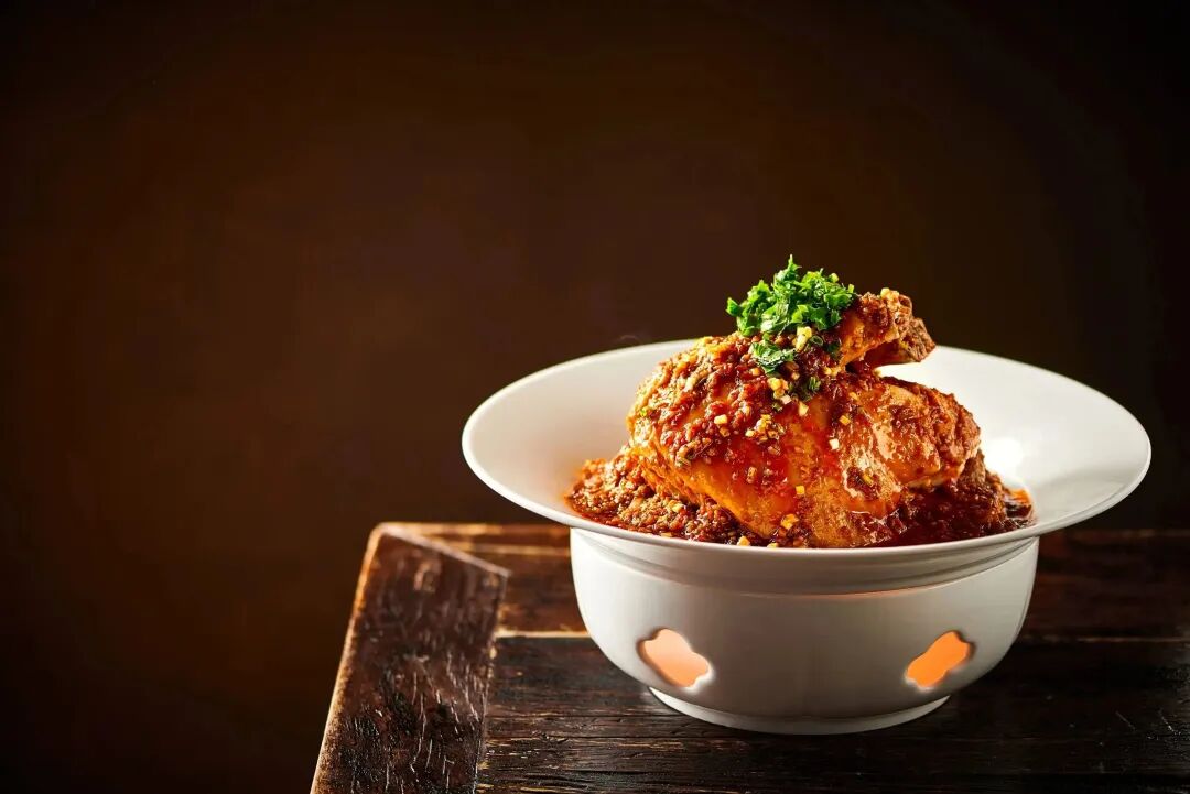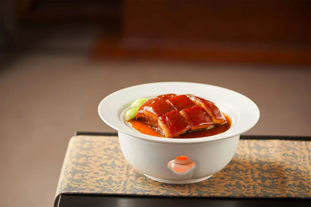 东坡肘子是眉州东坡的传家菜,也是东坡美食的代表菜,不吃此菜不足以知东坡味,它的味型是家常姜汁味,姜味突出。三种吃法:吃的时候一看汁,二尝皮,三吃肉,讲究"皮肉并重"。东坡肘子有四个特点:肥而不腻,瘦而不柴,耙而不烂,丰腴而不油腻。