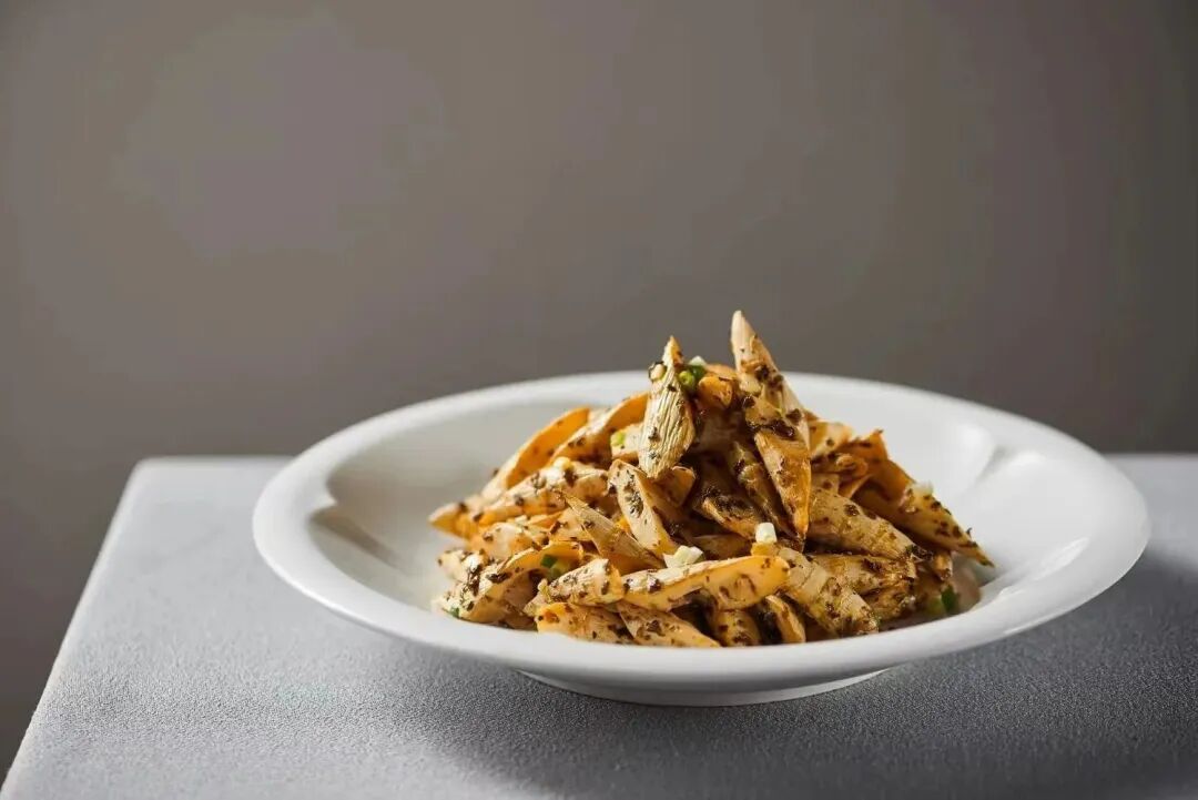 苏东坡对竹最经典的评说,无疑是“无肉令人瘦,无竹令人俗。人瘦尚可肥,俗士不可医”这一句。眉州东坡为了增加东坡竹笋的家乡风情,又在竹笋炒肉里加入了冬菜、芽菜使其于清香之间更有回味。