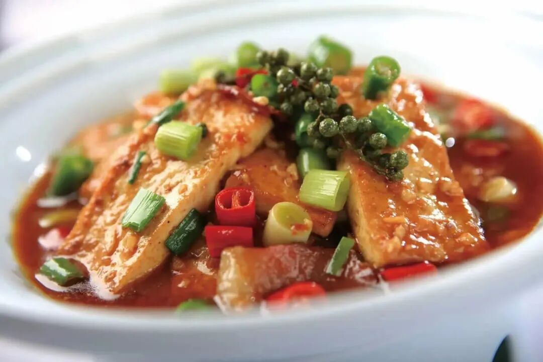 将老豆腐煎至两面金黄,加上腊肉和青红椒圈细心地烹烧,带着浓郁的家常味汁,佐酒拌饭两相宜。