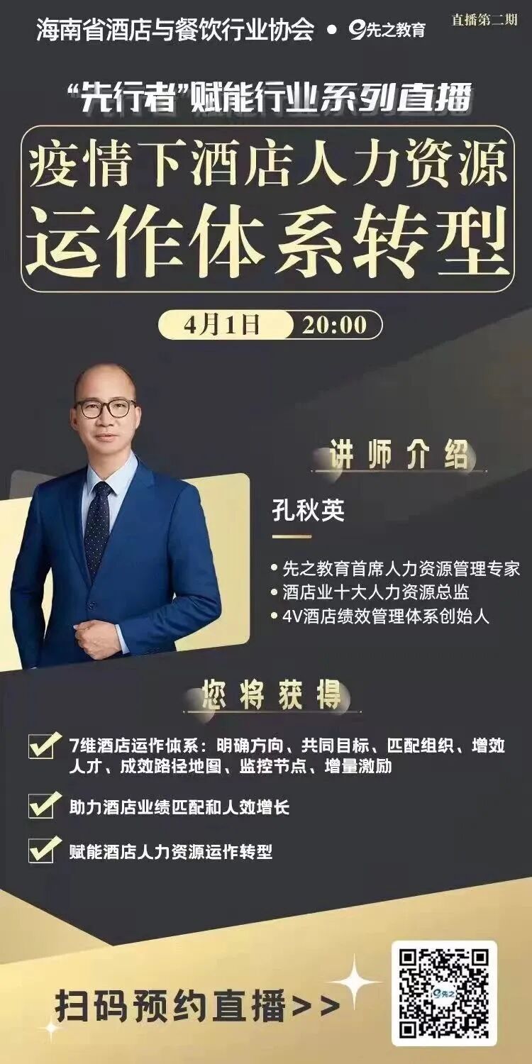 海南省酒店与餐饮行业协会联合先之教育(旅游服务业在线教育领导品牌),开展“先行者”公益助学计划,面向本省旅游饭店企业开通公益直播及在线视频培训,帮助行业从业者夯实基本功,做好坚实基础。