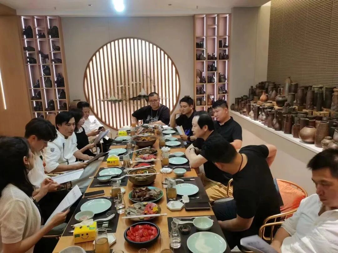 海南省酒店与餐饮行业协会执行会长陈恒受“湘潭渔香庭院”董事长杨波邀请,在湘潭市餐饮行业协会执行会长肖克资、湘潭市旅游饭店协会会长罗慧高等陪同下,考察湘潭知名品牌餐企“渔香庭院.十三鲜”。