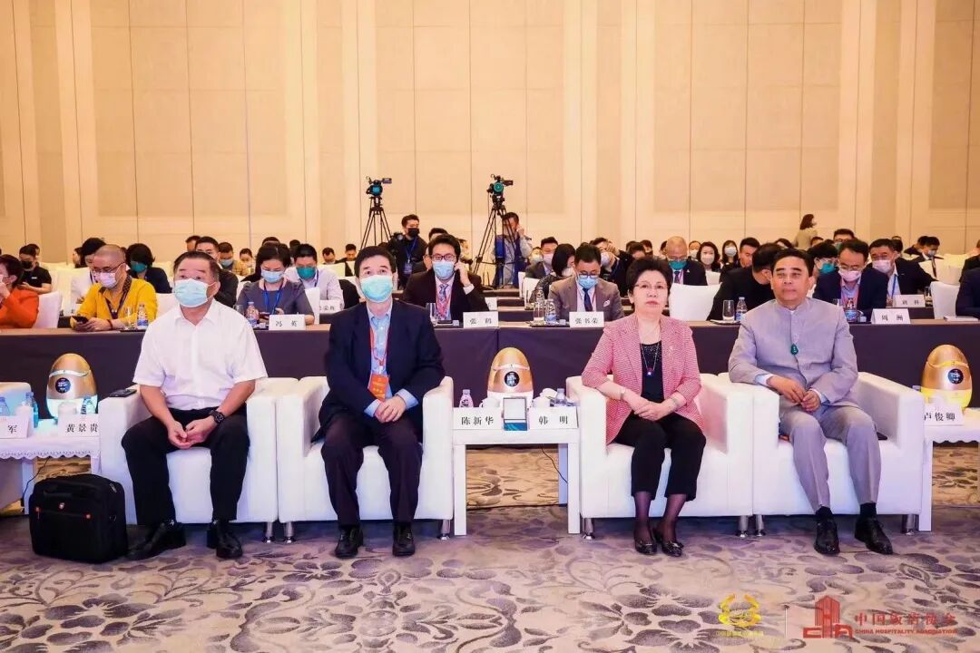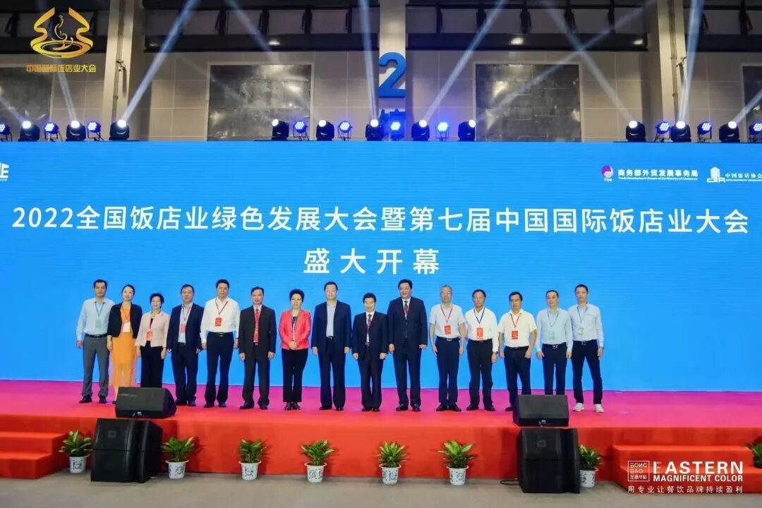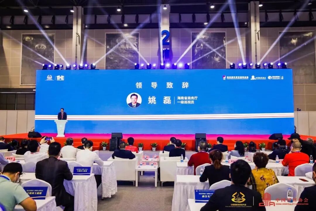 由商务部外贸发展事务局、国际饭店与餐馆协会、全国绿色饭店工作委员会、海南省商务厅和海口市人民政府支持,中国饭店协会、海南国际经济发展局和海南省归国华侨联合会主办,海南省酒店餐饮行业协会承办的“2022全国饭店业绿色发展大会暨第七届中国国际饭店业大会”在海口市开幕。商务部海南特派办特派员史淳风,中国饭店协会资深会长韩明,海南省归国华侨联合会党组书记、主席黎才旺,中国饭店协会会长陈新华,海南省商务厅一级巡视员姚磊等政府部门领导,海南省酒店与餐饮行业协会会长、海南龙泉集团有限公司董事长符史钦,协会执行会长陈恒,协会理事长、皇马假日集团有限公司董事长黄俊忠,协会监事长、荷泰投资集团有限公司董事长李朝清,以及全国地方餐饮酒店行业协会负责人和餐饮酒店董事长/总经理、品牌供应商、投资商、主流媒体代表等千余人出席开幕式。