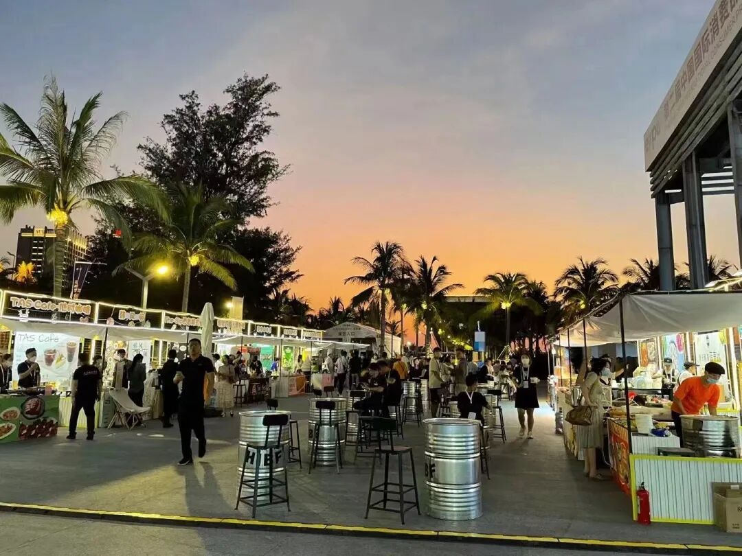 受海口市投促局委托,海南省酒店与餐饮行业协会在海口市国家帆船基地公共码头举行的第二届中国国际消费品博览会现场特设“品味海口”美食品鉴区。以“逛消博、游海口、食美味”为理念提供餐饮保障服务。