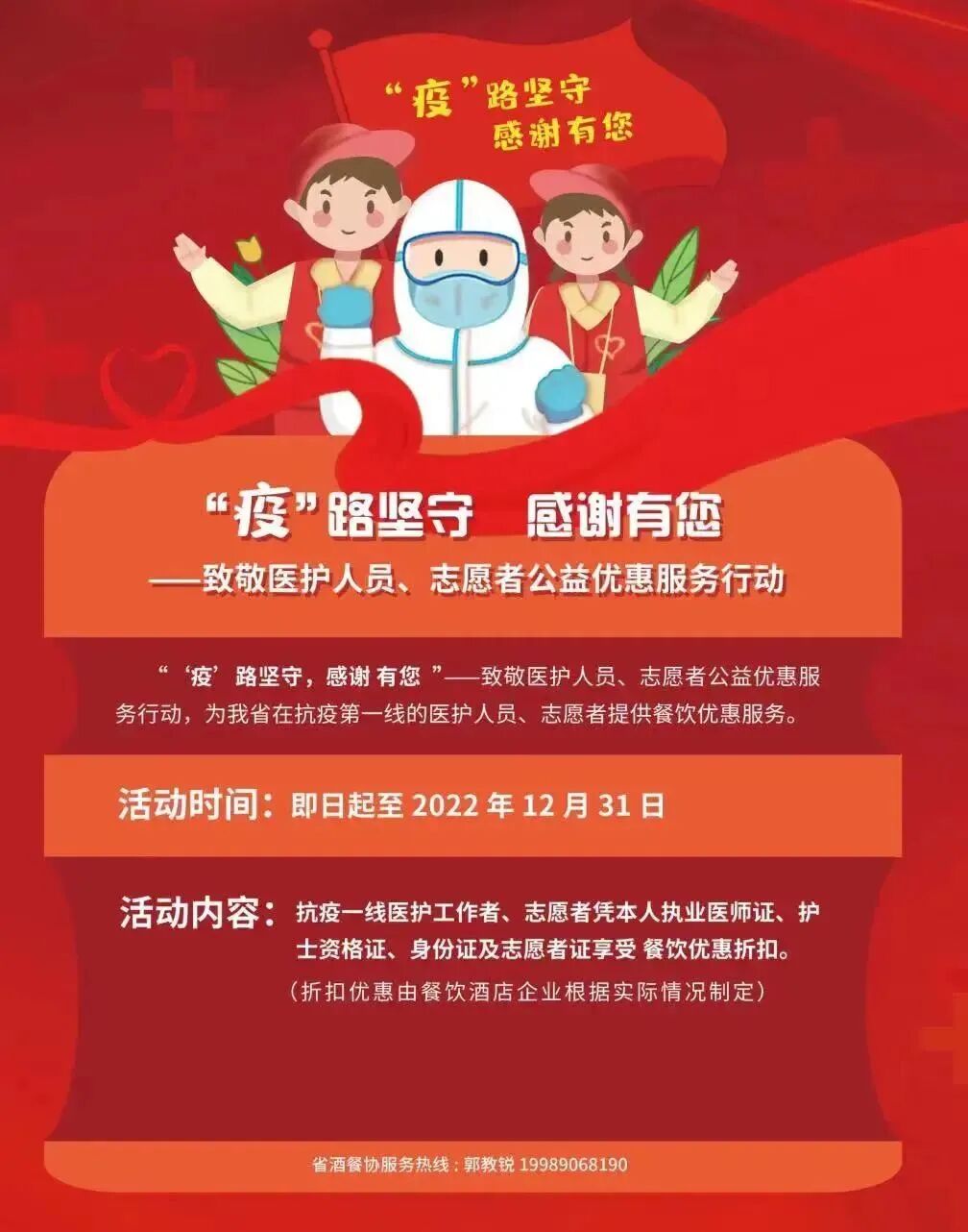 在海南省商务厅支持下,海南省酒店与餐饮行业协会、海南省酒店与餐饮行业工会联合会号召行业企业参加“疫'路坚守,感谢有您”公益活动,海南龙泉集团、琼菜王、琼菜记忆、拾味集团、九毛九、菊姬日料、古姑姑、三湘人家等90家餐饮品牌近800家门店,以及海南迎宾馆、海口万丽酒店、丽思卡尔顿酒店、威斯汀酒店、星海湾铂尔曼酒店、希尔顿酒店、喜来登酒店等40家酒店企业携手推出系列餐饮消费优惠。