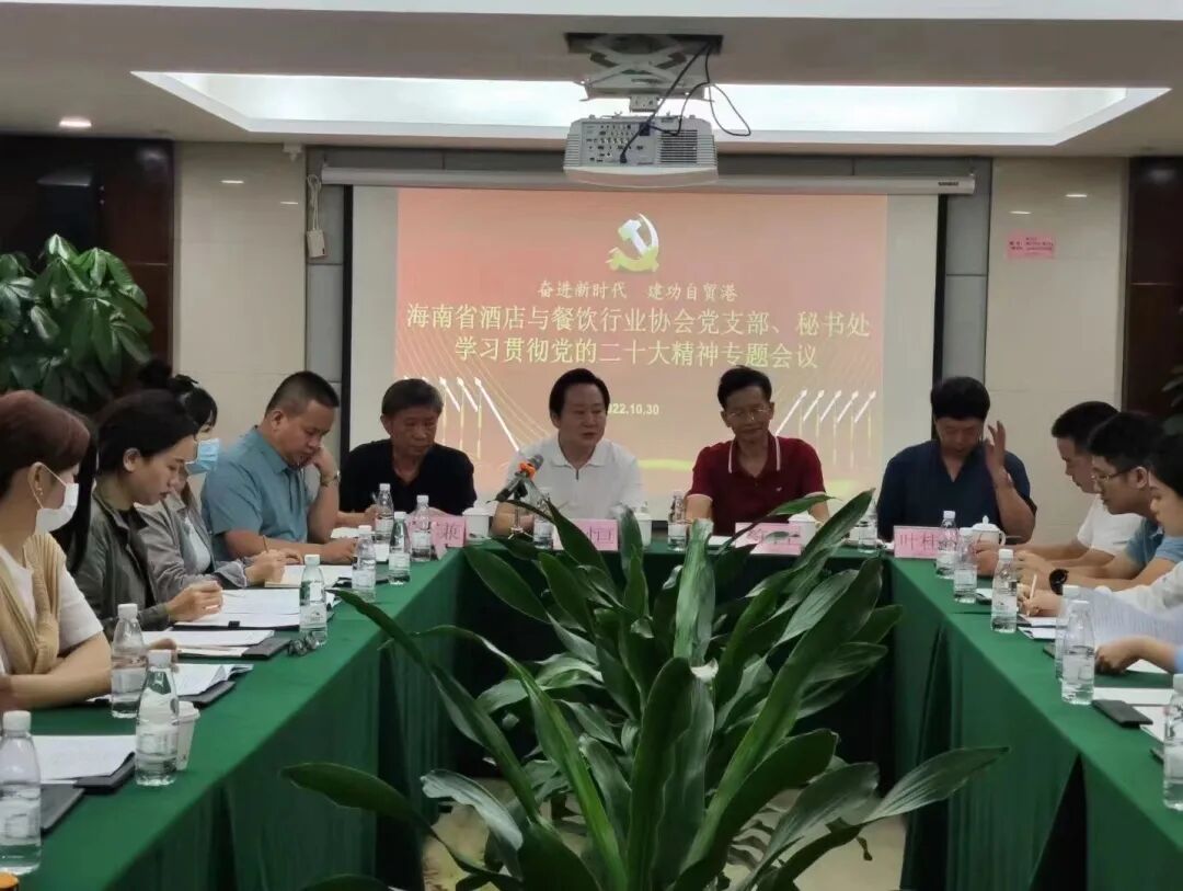 海南省酒店与餐饮行业协会党支部和协会秘书处学习贯彻党的二十大精神专题会议在海口兴泰粤海酒店召开。