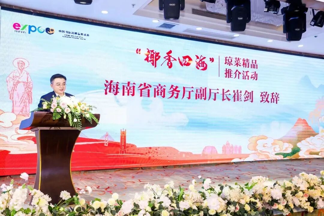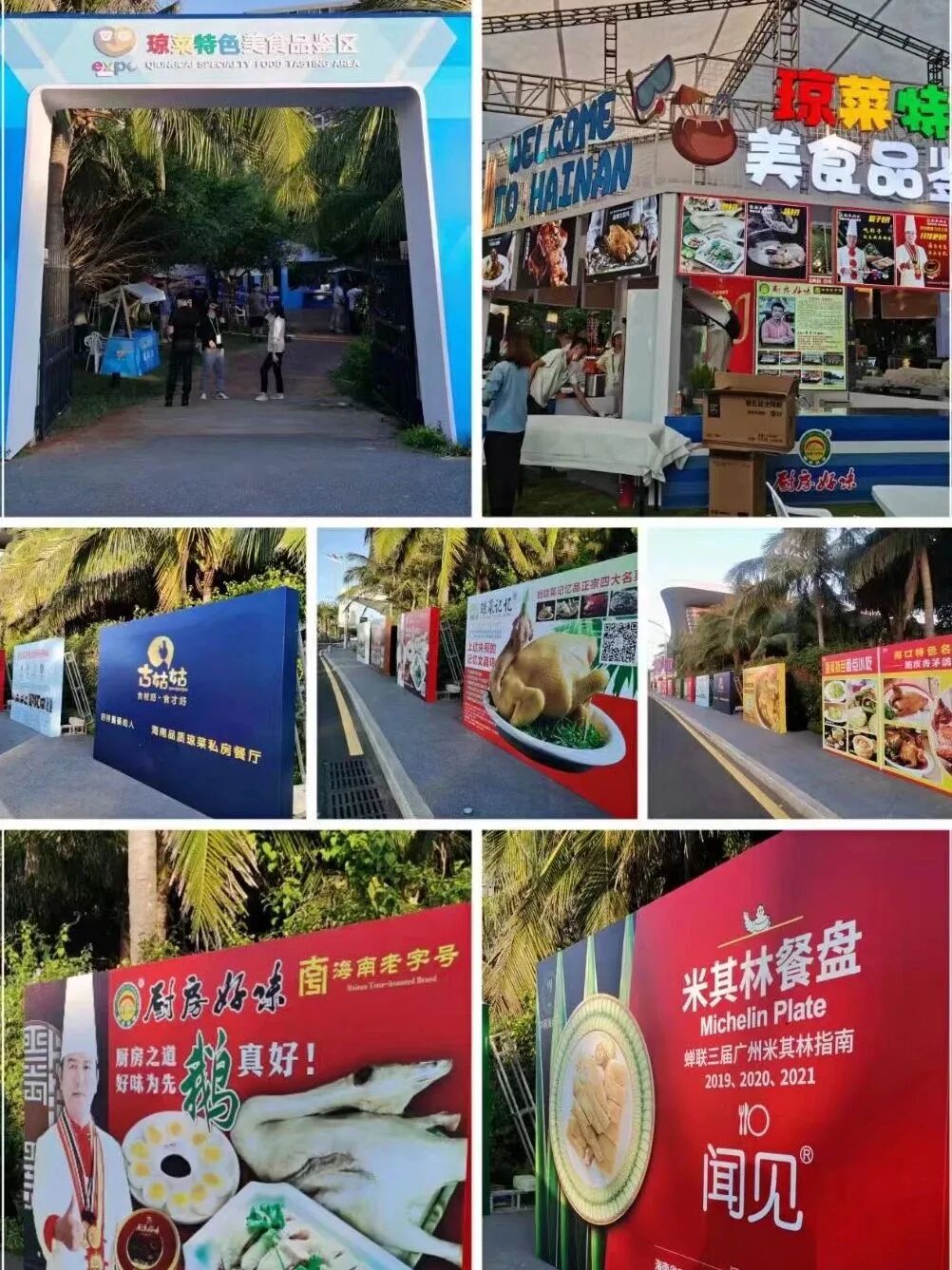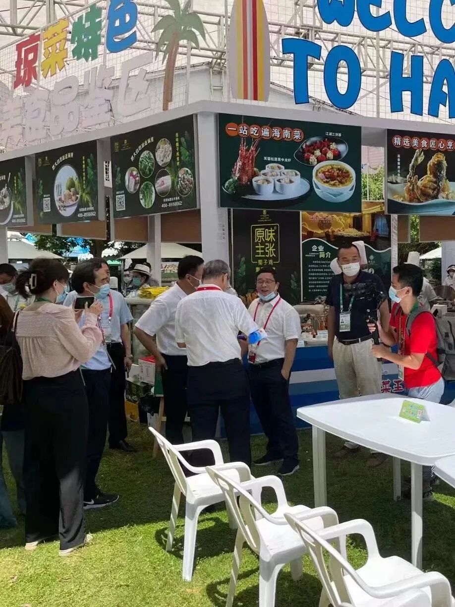 由海口市人民政府、海南国际经济发展局指导,海口市商务局主办,海南省酒店与餐饮行业协会承办的中国国际消费品博览会琼菜特色美食品鉴活动在海南国际会展中心金色阳光草坪举办,精选10家琼菜企业共同做好中外媒体餐饮服务工作,向世界宣传琼菜。