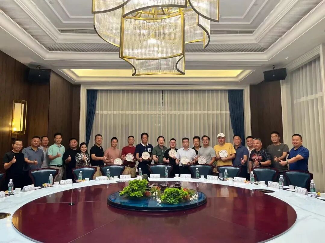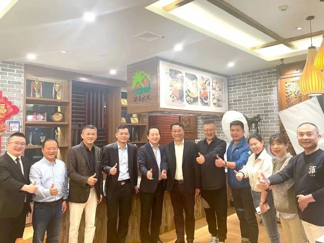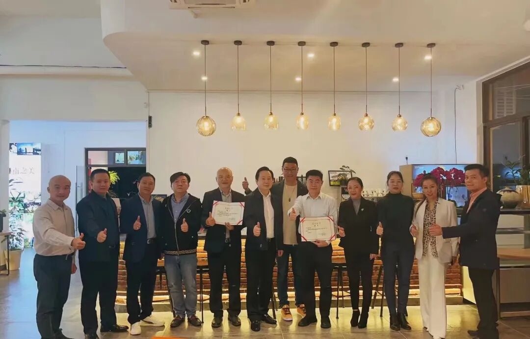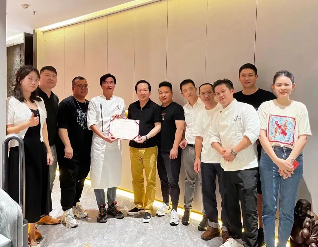 海南省酒店与餐饮行业协会执行会长陈恒与部分品牌餐饮企业相聚“椰乡牧鸡.金盘食验室”,共同见证协会为李有杰(李子)和韦琳两位优秀美食文化专家颁发“海南国际旅游消费中心智库专家”聘书和品鉴交流“金盘食验室”特色美食。