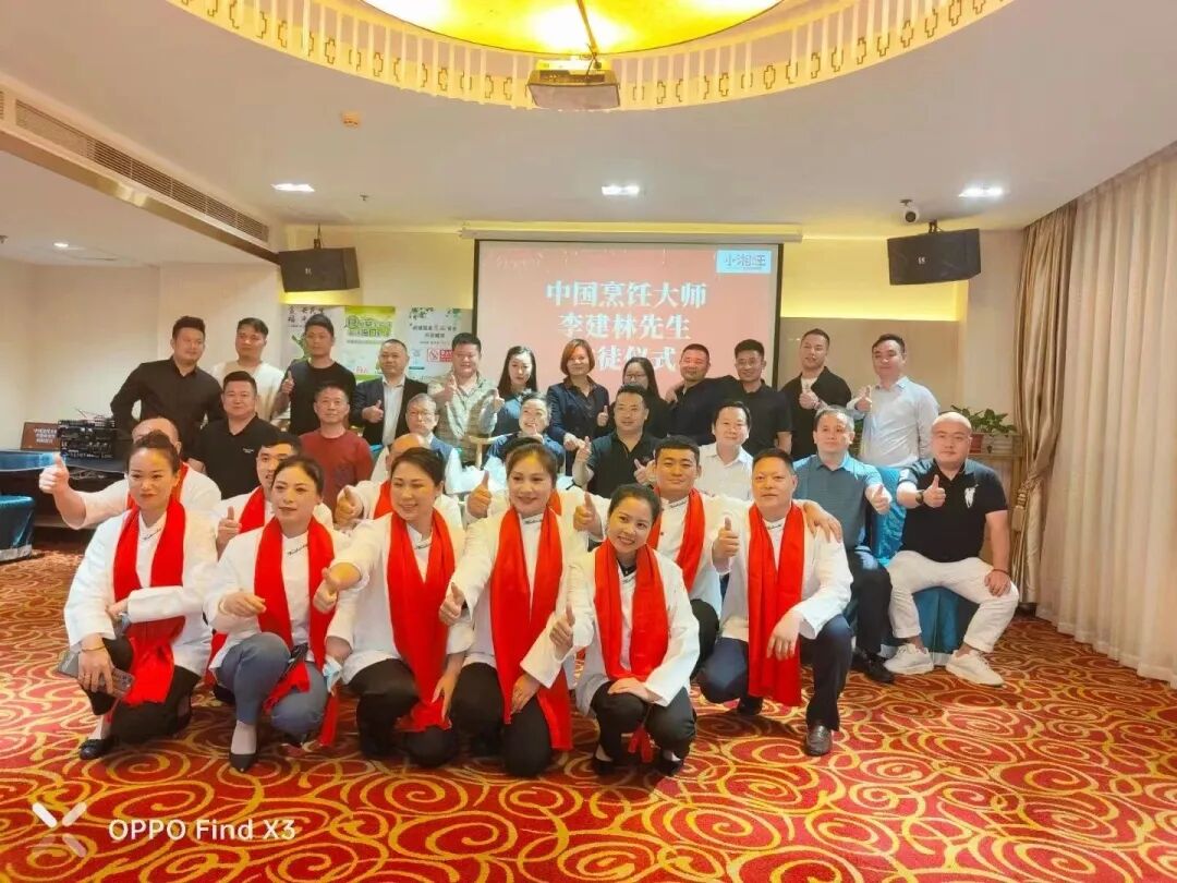 海南省酒店与餐饮行业协会领导在海南迎宾馆见证中国烹饪大师、中国湘菜大师、小湘旺餐饮集团董事长李建林的收徒仪式。
