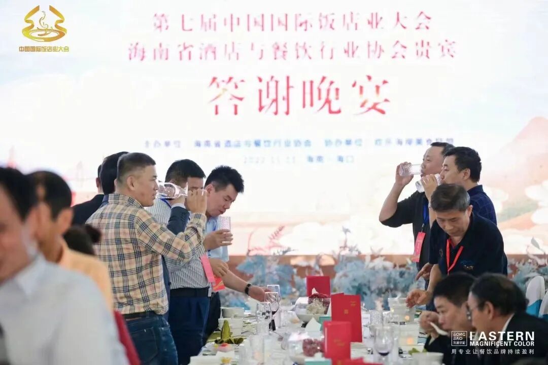以“美食飘香,情满双11”为主题的第七届中国国际饭店业大会--海南省酒店与餐饮行业协会贵宾答谢晚宴在欢乐海岸美食联盟举行,协会邀请与会主席团主席和副会长及专家相聚。