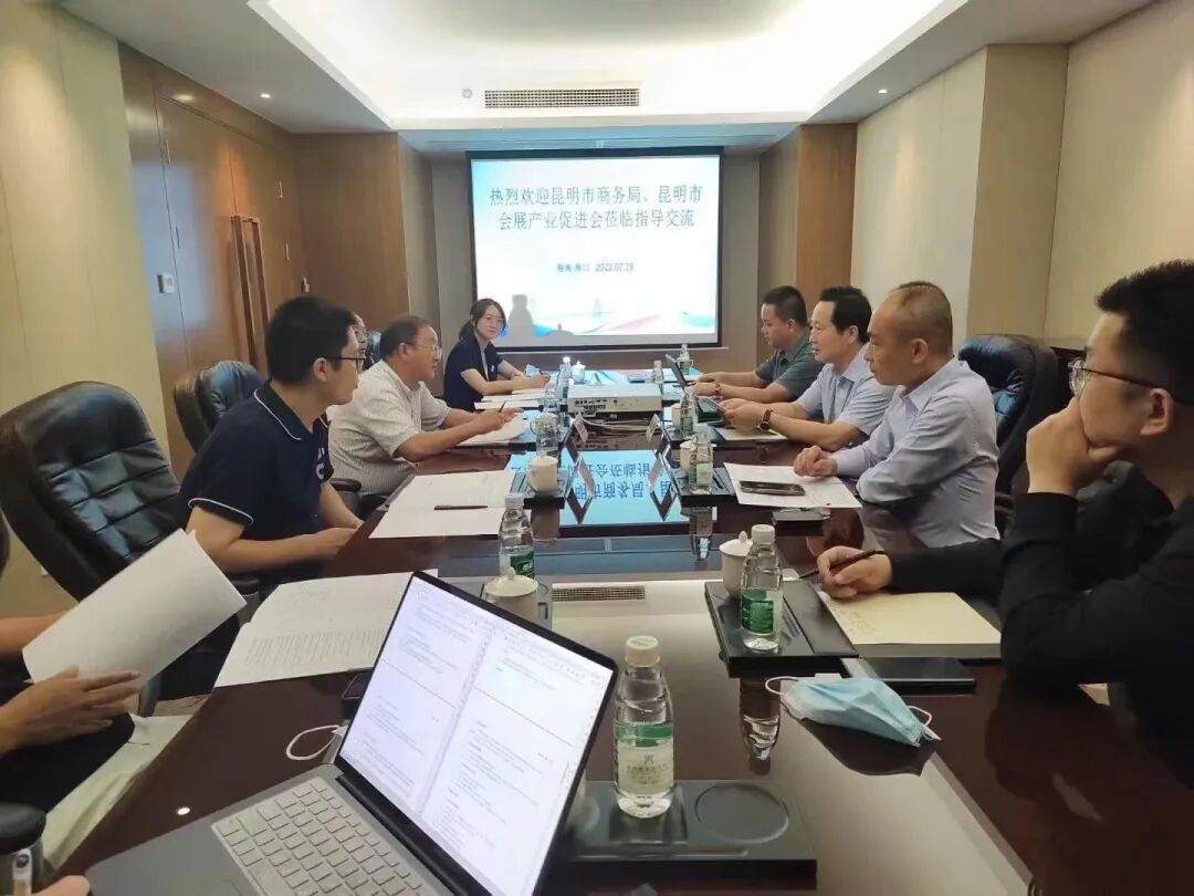 海南省酒店与餐饮行业协会与昆明市商务局副局长杨志武、昆明市商务局会展处处长林刚、昆明会展产业促进会秘书长王国等来宾就会议型酒店和会展接待餐厅评定等工作进行调研和交流。