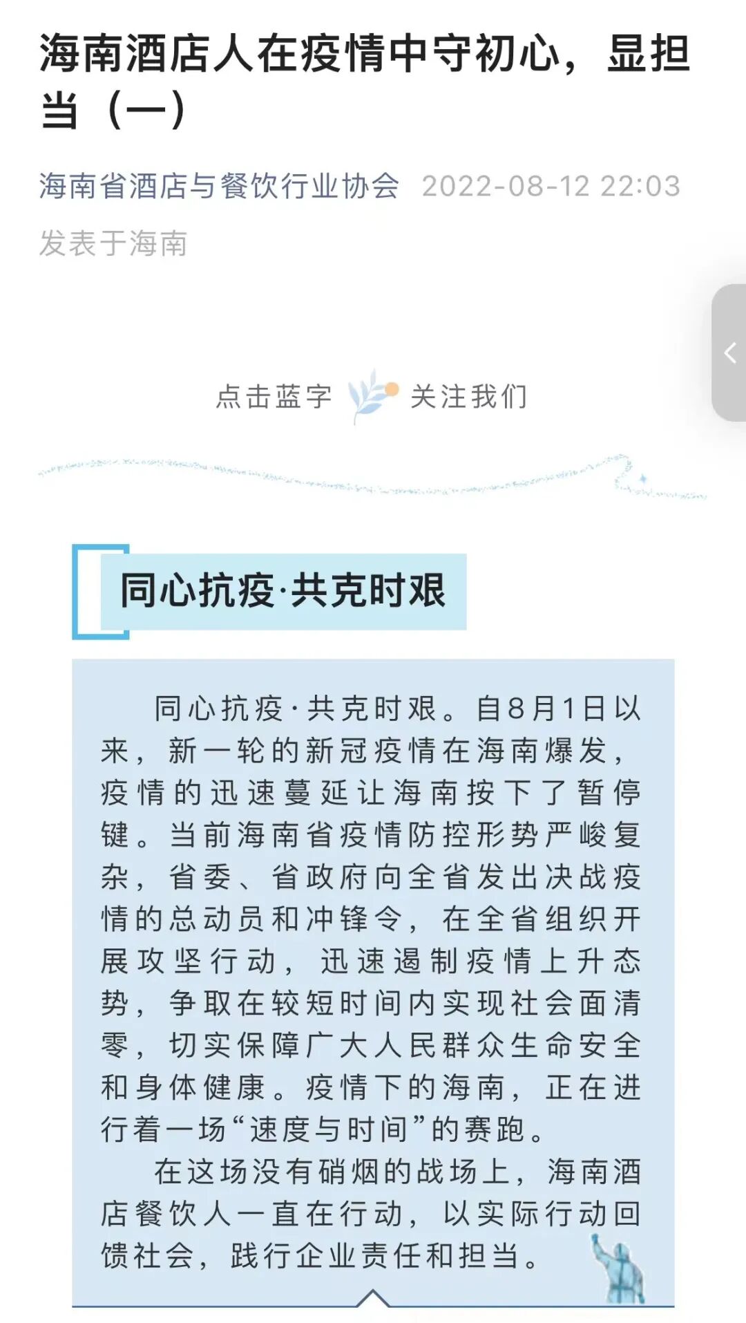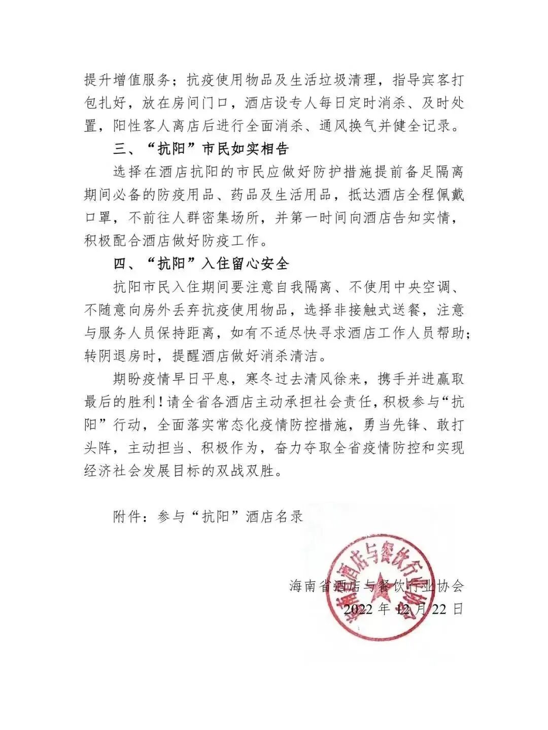 海南省酒店与餐饮行业协会发布关于鼓励海南省酒店业积极“抗阳”携手“战疫”的倡议书。