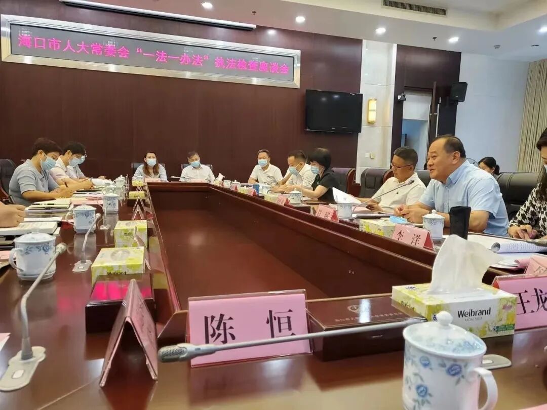 海南省酒店与餐饮行业协会执行会长陈恒出席海口市人大常委会“一法一办法”执法检查座谈会,并陪同参与促进就业法“一法一办法”执法检查。