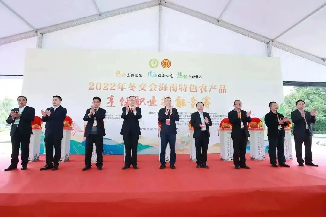 由海南省总工会主办,海南省财贸旅游烟草工会、省酒店与餐饮行业协会、省酒店与餐饮行业工会联合会承办的“2022年冬交会海南特色农产品烹饪职业技能竞赛”在海南国际会展中心举行。省人大常委会副主任、省总工会主席陆志远,省人力资源和社会保障厅一级巡视员林琳,省总工会党组成员、副主席何清,省农业农村厅总农艺师李鹏,省商务厅二级巡视员王建国等政府领导以及各市县总工会和餐饮烹饪协会相关负责人,省内酒店餐饮企业负责人、参展企业、参赛选手、媒体代表500余人参加。