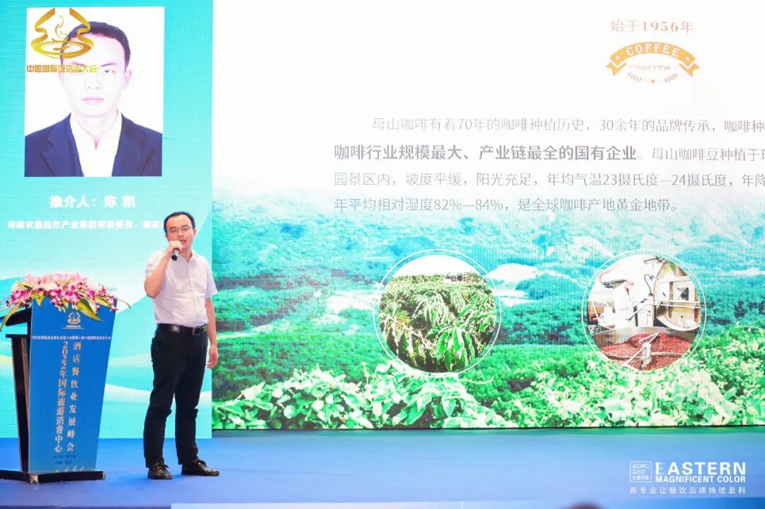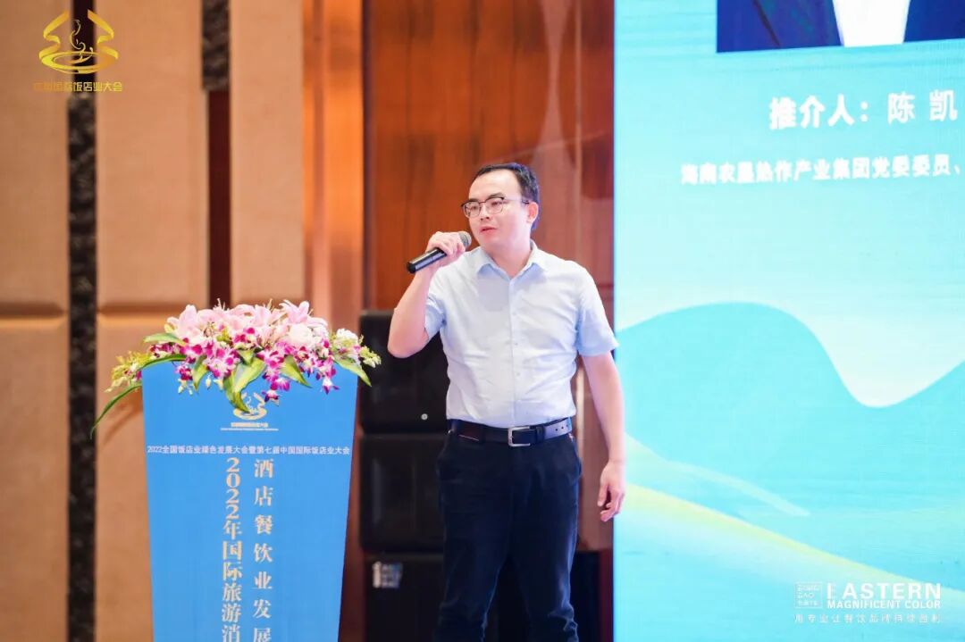 为提升海南餐饮业国际服务水平和品牌影响力,提升餐饮业高质量发展,推动餐饮与酒店、农业、食品、旅游、科技、金融等产业的融合发展,助力乡村振兴,引领餐饮人在新时代下合力共赢,更好地服务海南自贸港和国际旅游消费中心建设,大会上海南农垦热作产业集团党委委员、副总经理 陈凯作产品项目推介。