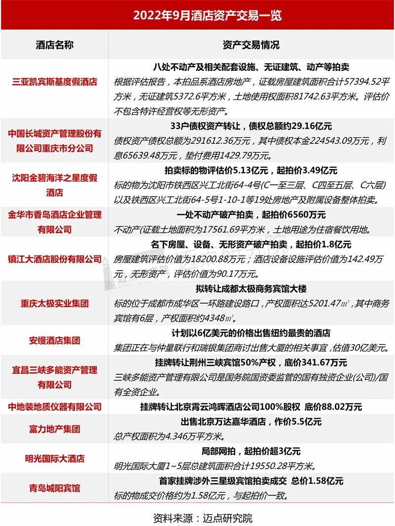 4.酒店资产交易:酒店经营遭困局,拍卖出售转让交易活跃