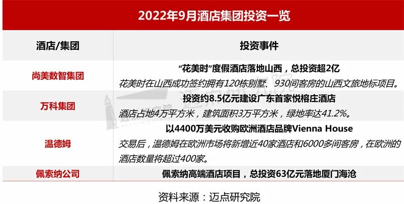 同时,尚美数智集团投资超2亿元建设花美时度假酒店项目;万科集团投资8.5亿元建设广东首家悦榕庄酒店;佩索纳高端酒店项目,总投资63亿元落地厦门海沧。这反映出资本对于高端与特色酒店的投资偏好。