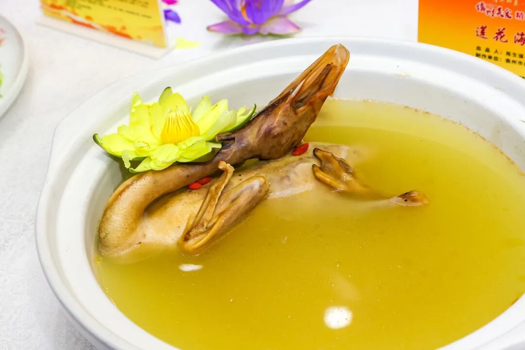 推介会上,在《儋耳家园》歌舞中,由烹饪名师制作的东坡肉伴儋州红鱼、东坡椰盅羊肉、东坡酒煮生蚝、儋州粽等名菜供省内外来宾品鉴。色味俱佳、芳香四溢、秀色可餐的儋州地方特色佳肴让来宾回味悠长,及更多的品味美食背后的匠心与传承、文化与情感。推介活动在儋州美食宣传片和欢送曲《调声唱响中国梦》中落下帷幕。