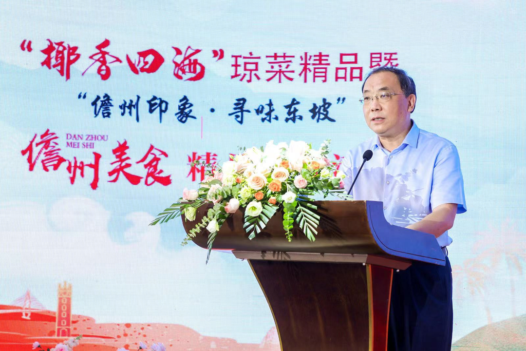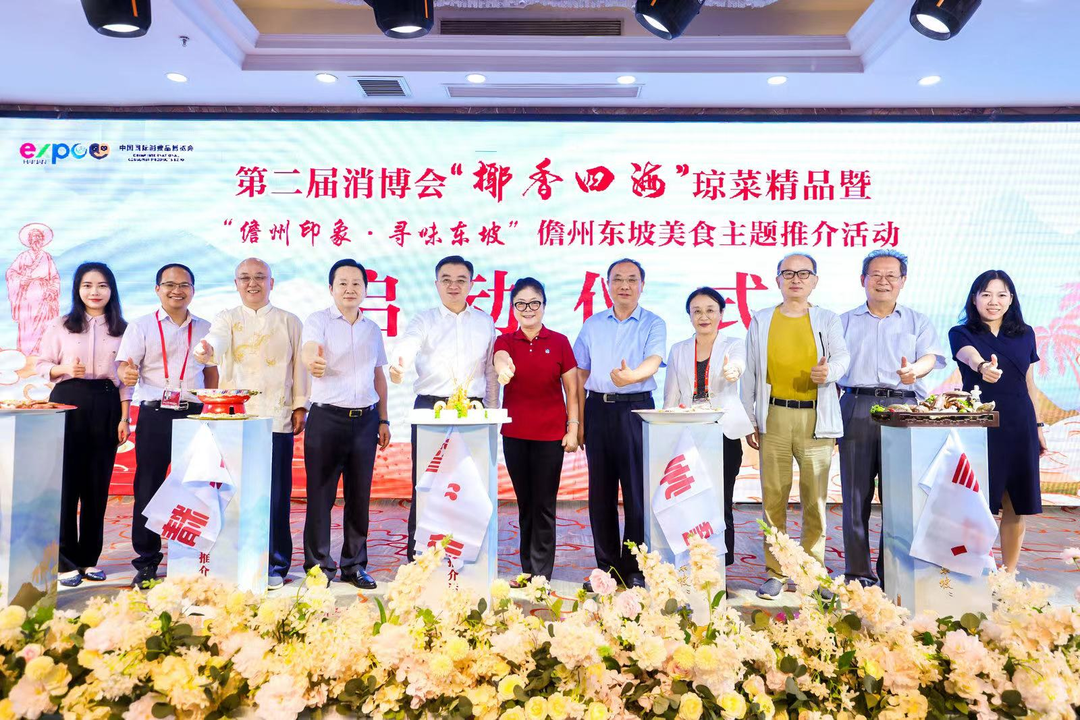 大海之南,山海之间;盛夏之际,消博如约。为围绕海南国际旅游消费中心定位,有效扩大琼菜宣传面,树立琼菜品牌良好形象,提升琼菜品牌影响力,促进琼菜品牌与国内外的交流与经贸合作,推动海南餐饮业高质量发展。7月26日,由世界中餐业联合会、海南省商务厅、儋州市人民政府主办,海南国际经济发展局指导,海南省酒店与餐饮行业协会、洋浦经济开发区投资促进局承办,国际华文媒体联盟、北京东方美食研究院、海南农垦热作产业集团有限公司、海口市餐饮烹饪行业协会、儋州市美食行业协会、邢涛劳模创新工作室、海口欢乐海岸美食联盟等单位协办的第二届消博会“椰香四海”琼菜精品推介活动在海口举办,活动邀请儋州市作为主宾城市。海南省政协原副主席赵莉莎,世界中餐业联合会会长邢颖,海南省商务厅副厅长崔剑,儋州市人民政府副市长、洋浦管委会副主任王民,海南省苏学研究会理事长、海南省广播电视总台原副台长李公羽,东方美食研究院院长、中国人民大学食政问题研究中心主任刘广伟,国际华文媒体联盟主席续炳义,海南省消费局局长吴梁,洋浦投资促进局局长郑妮,中国饭店协会副监事长、海南省酒店与餐饮行业协会执行会长陈恒,海南农垦热作产业集团有限公司党委书记、董事长李豫,儋州市政府副秘书长孙静,儋州市旅文局副局长黄觉民,洋浦投资促进局副局长程庆,洋浦投资促进局副局长吕良伟,以及湖北省烹饪与酒店行业协会、江苏省餐饮行业协会、广东省餐饮服务行业协会、浙江杭帮菜研究会、广西桂菜发展促进会、青岛市餐饮行业协会等近20个省市区餐饮业协会会长、秘书长、知名烹饪大师名厨和消博会期间来琼的特邀嘉宾,以及中国日报社、新浪网、人民网等境内外媒体代表,省内知名餐饮企业代表等近200人参会。