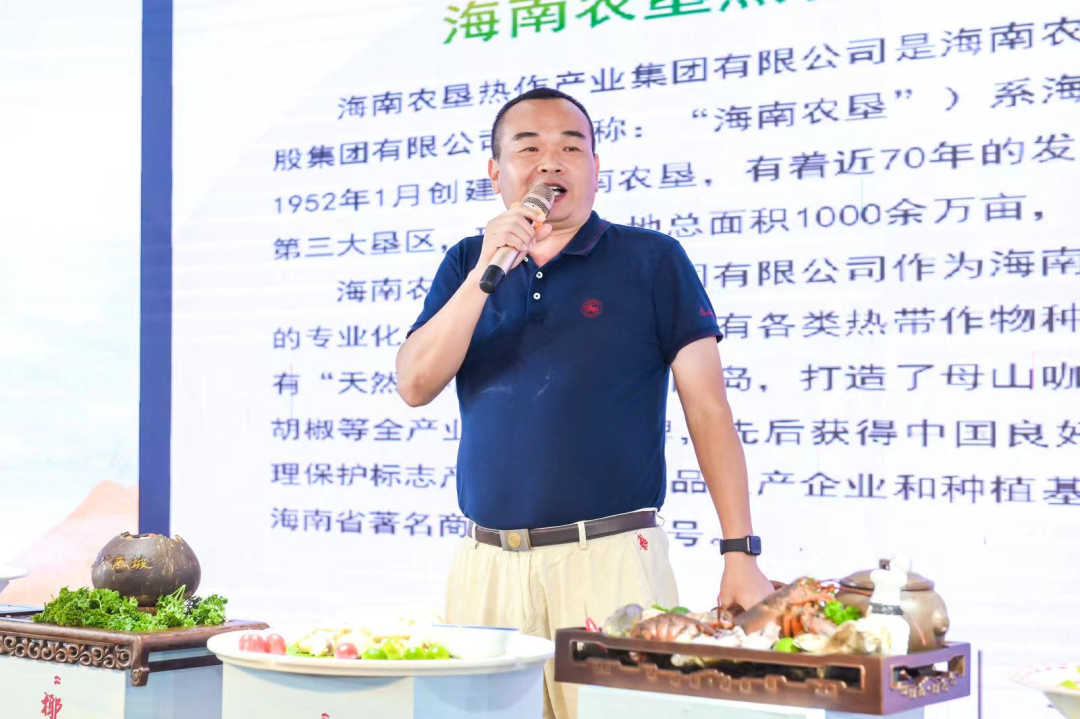 会上,由海南农垦热作产业集团有限公司党委书记、董事长李豫作农垦热作特色农产品推介。海南农垦热作产业集团是海南农垦旗下的全资二级企业,也是海南省政府直属国有企业,拥有海南省最大的农业产业集群,原来曾是全中国第三大垦区,被称为农业国家队。海南农垦热作产业集团的成立承担着振兴海南垦区,热作产业及其品牌的重任。海南作为我国唯一的热带省份,要实施乡村振兴战略,发挥热带地区气候优势,做强做优热带特色高效农业,打造国家热带现代农业基地,进一步打响海南热带农产品品牌。